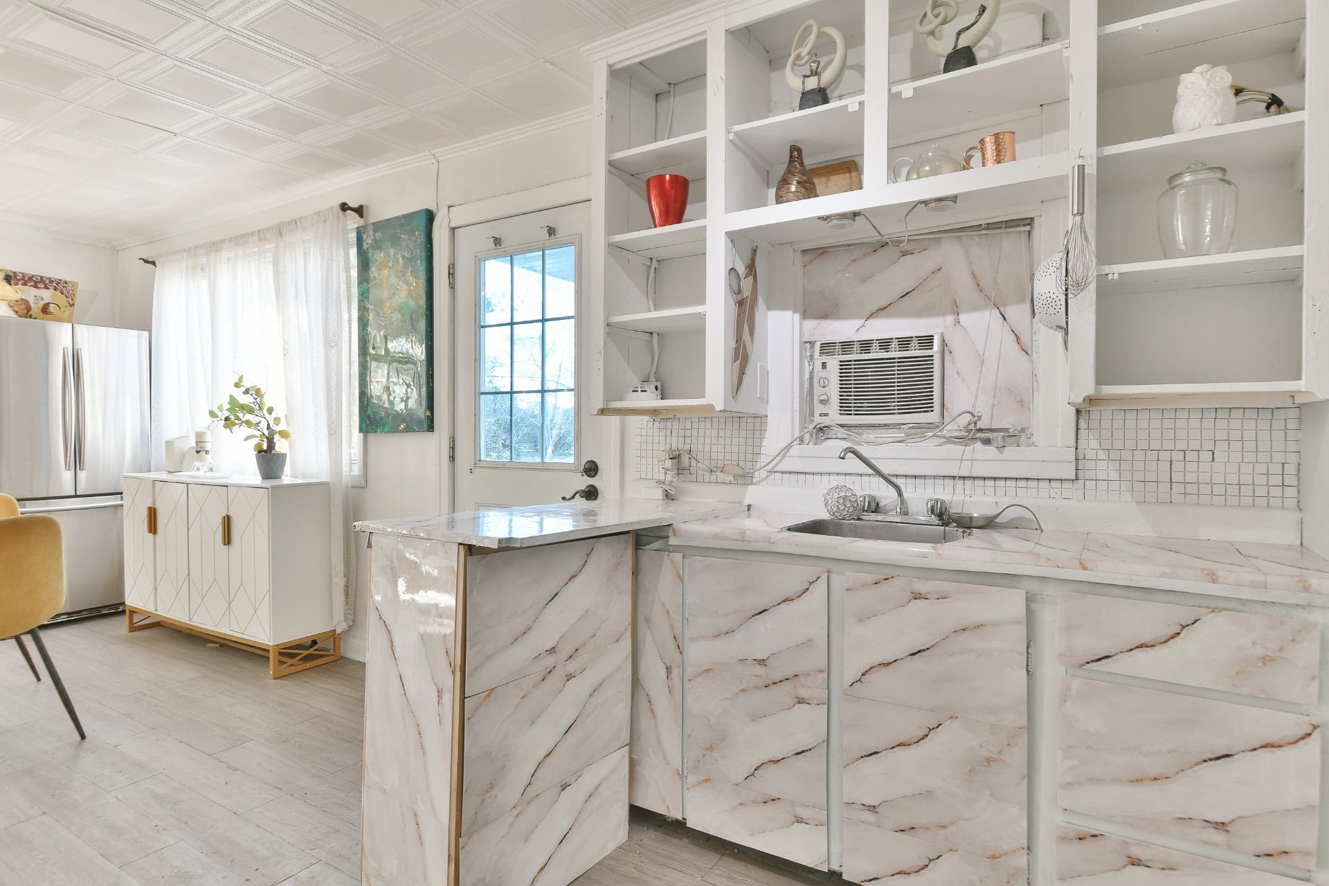 Les installations permanentes de chauffage, d'électricité & d'éclairage, tringles à rideaux, petit îlot dans la salle à manger, gazébo, cabanon.