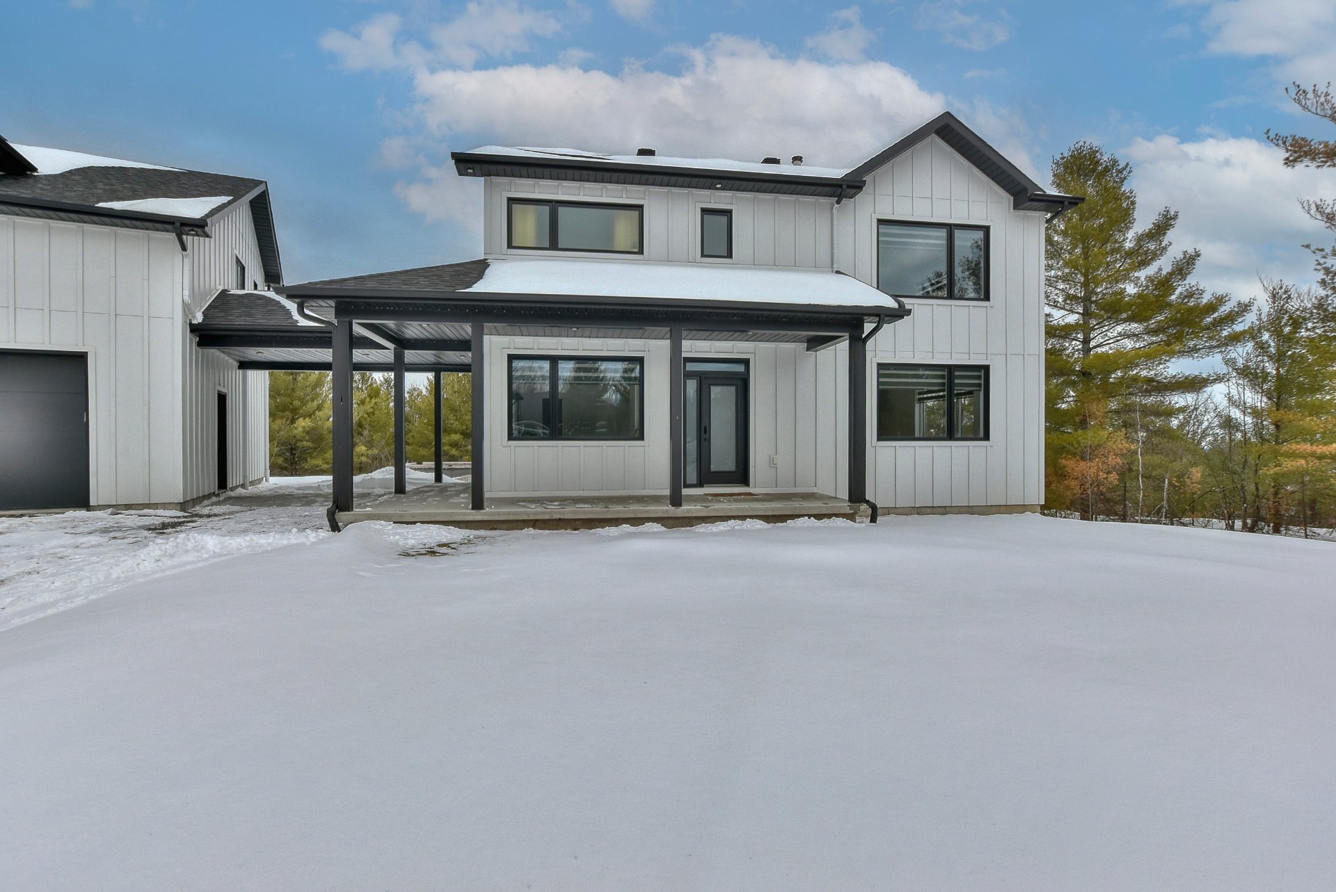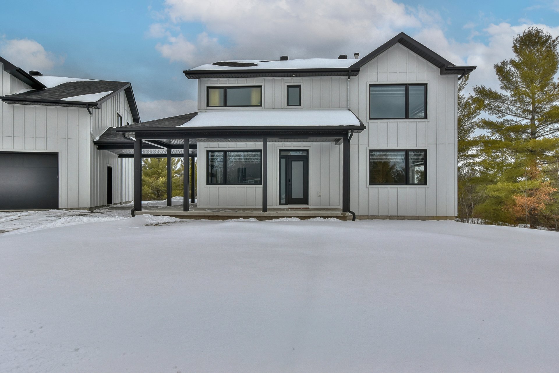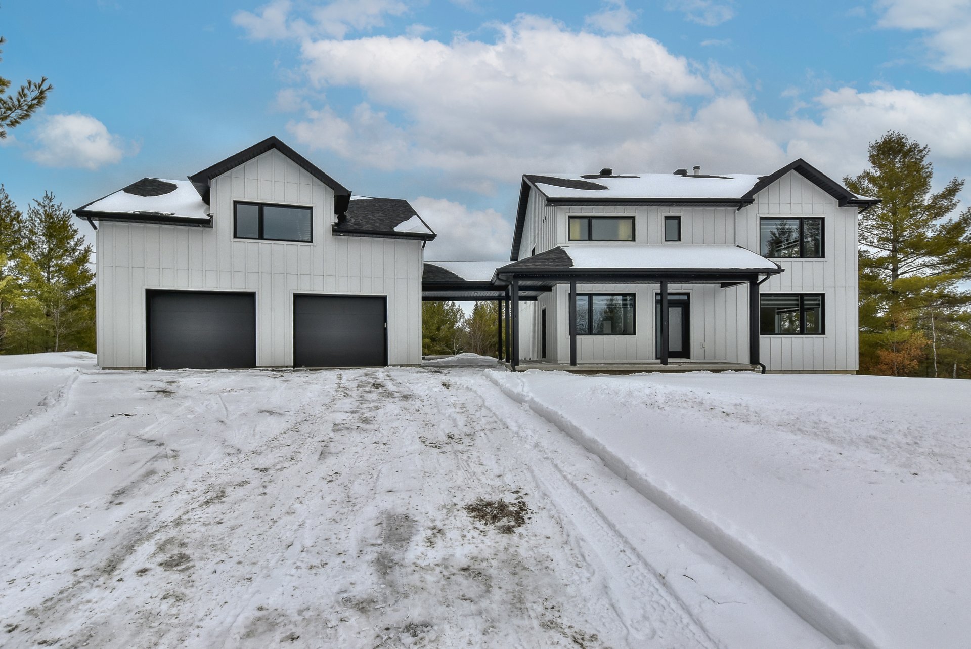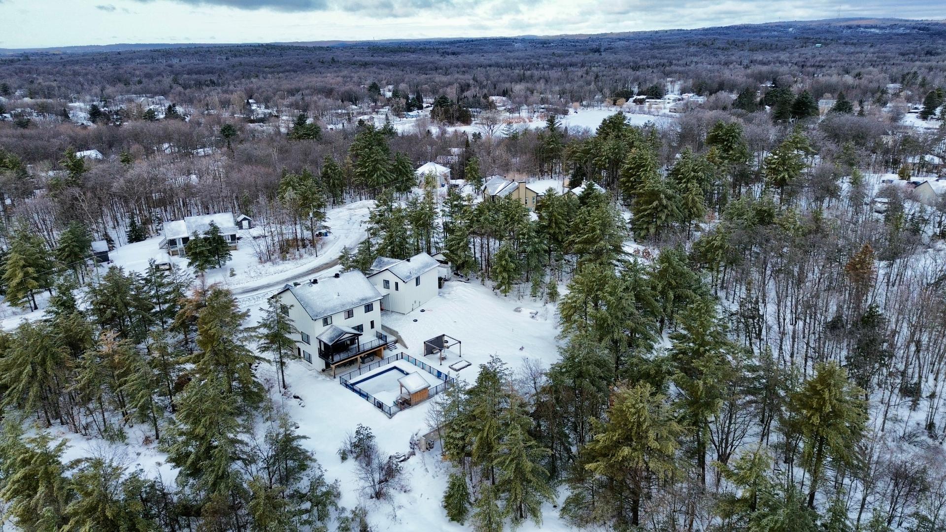 Magnifique propriété construite en 2020, alliant élégance et fonctionnalité. Elle offre trois garages, dont un avec mezzanine. La maison propose cinq chambres à coucher, deux salles de bain complètes incluant une attenante à la chambre principale, ainsi qu'une salle d'eau. La cuisine, moderne et conviviale, se distingue par ses comptoirs en quartz, son îlot central et son charmant coin café. Le salon du rez-de-chaussée séduit avec son foyer majestueux et ses planchers de bois chaleureux. Le tout est situé sur un vaste terrain de plus de 90 000 pieds carrés, sans voisin à l'arrière, avec une piscine creusée pour profiter de l'extérieur.