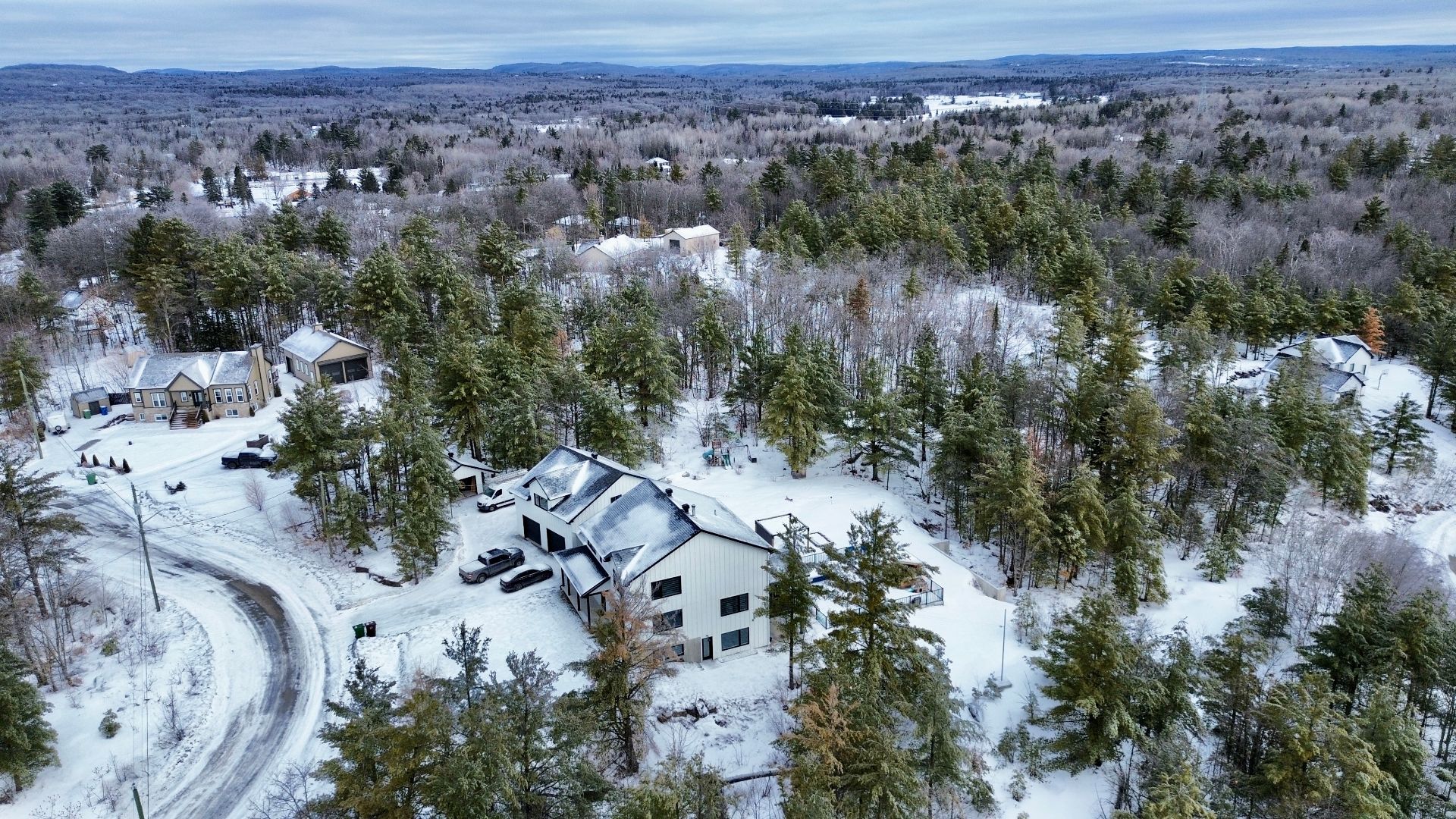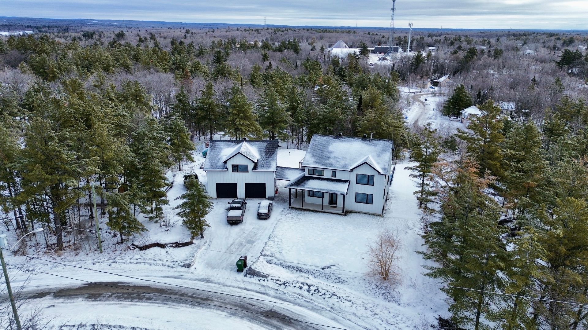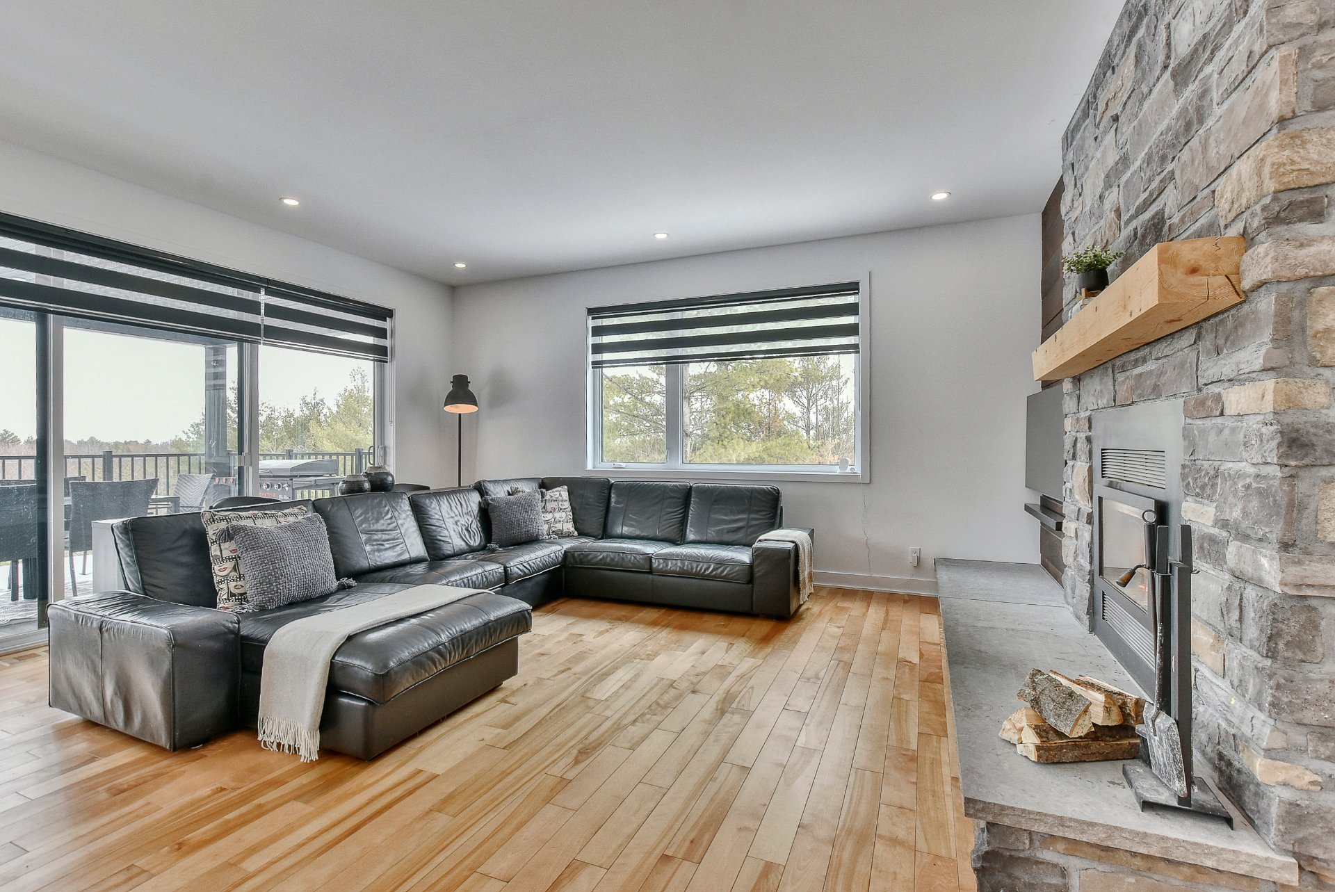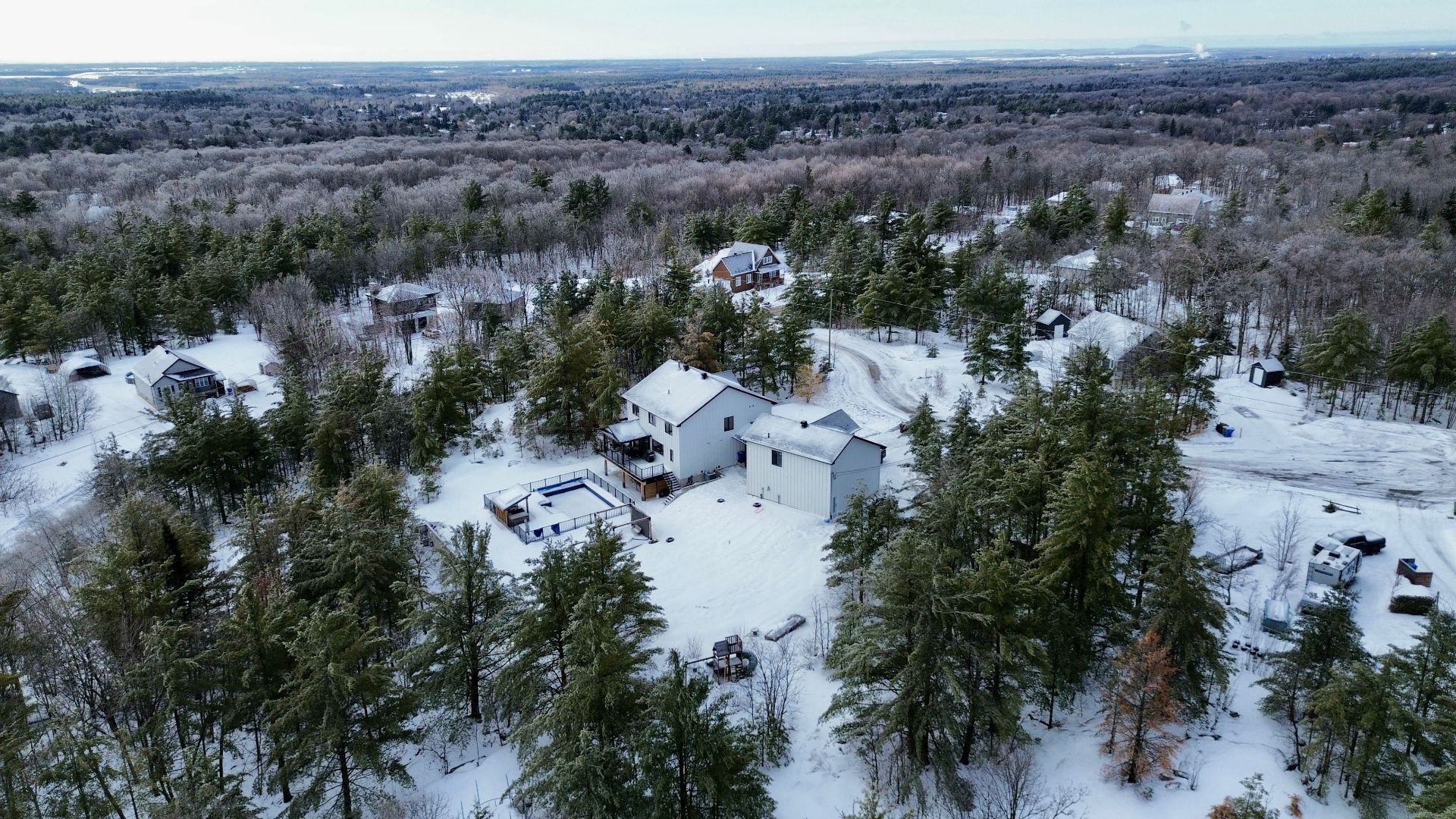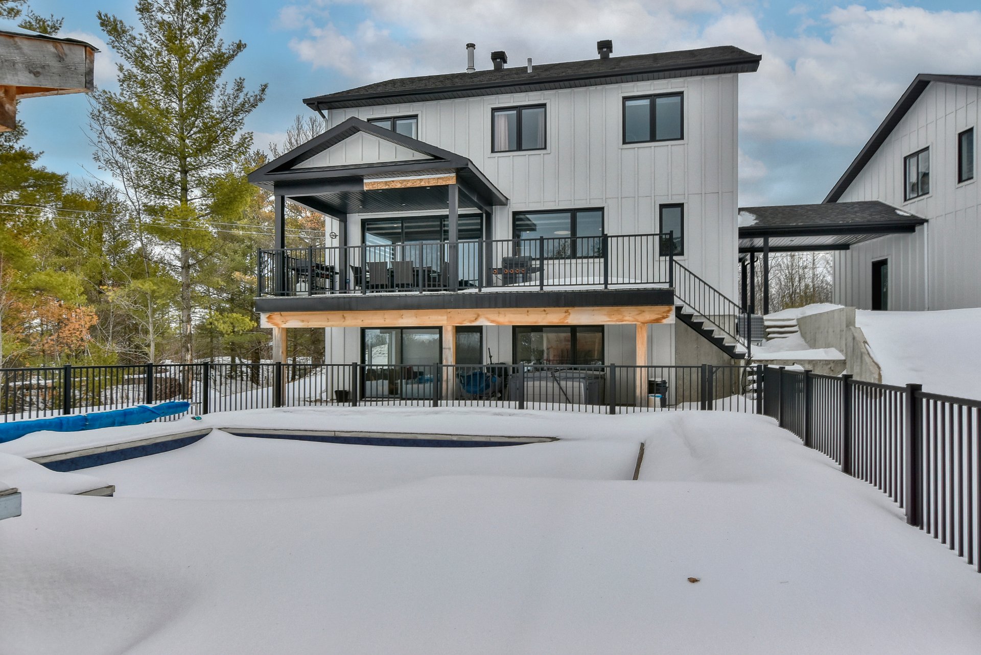 Magnifique propriété construite en 2020, alliant élégance et fonctionnalité. Elle offre trois garages, dont un avec mezzanine. La maison propose cinq chambres à coucher, deux salles de bain complètes incluant une attenante à la chambre principale, ainsi qu'une salle d'eau. La cuisine, moderne et conviviale, se distingue par ses comptoirs en quartz, son îlot central et son charmant coin café. Le salon du rez-de-chaussée séduit avec son foyer majestueux et ses planchers de bois chaleureux. Le tout est situé sur un vaste terrain de plus de 90 000 pieds carrés, sans voisin à l'arrière, avec une piscine creusée pour profiter de l'extérieur.