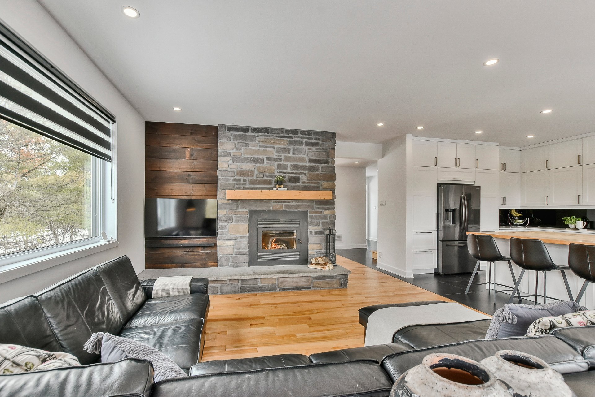 agrémenté d'un foyer majestueux,