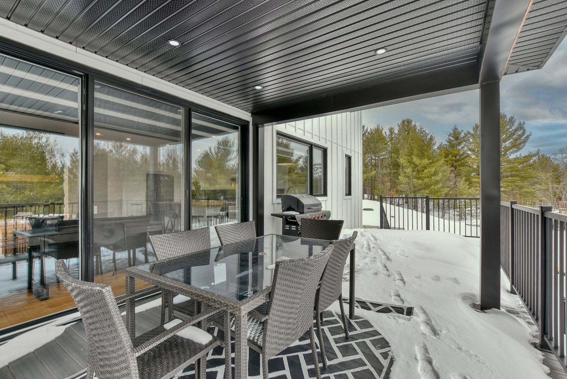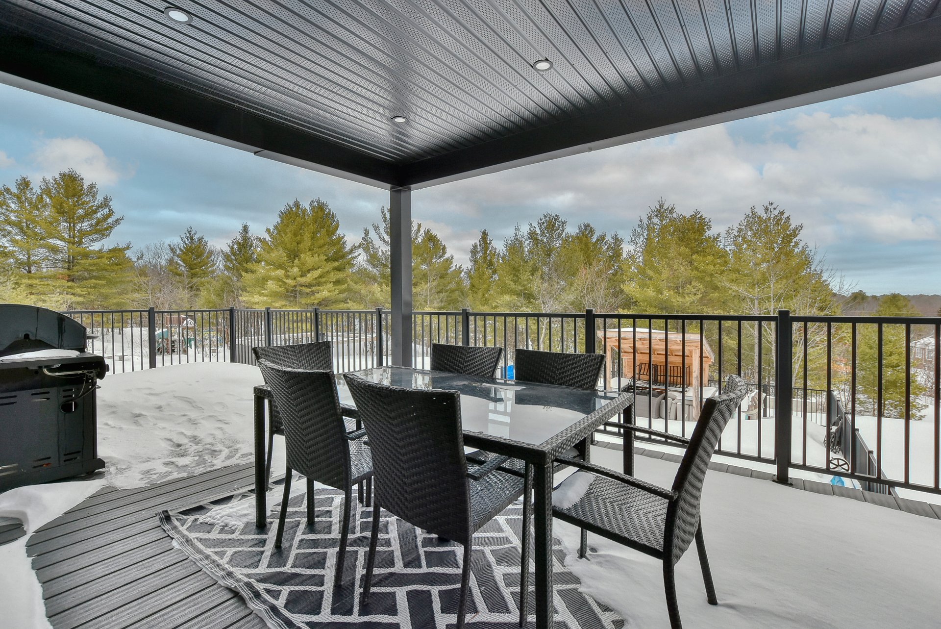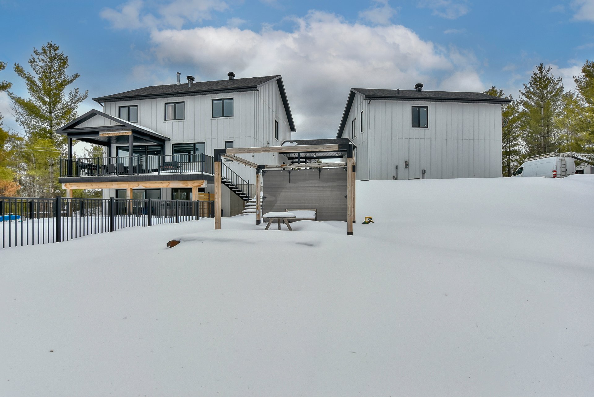 Les installations permanentes de chauffage, d'électricité et d'éclairage, stores, hotte de cuisinière, aspirateur central et accessoires, îlot de cuisine, refroidisseur à vin, adoucisseur d'eau, échangeur d'air, thermopompe centrale, foyer au bois, 2 ouvre portes de garage électrique, module de jeux pour enfants, piscine creusée au sel et accessoires, chauffe piscine, spa.