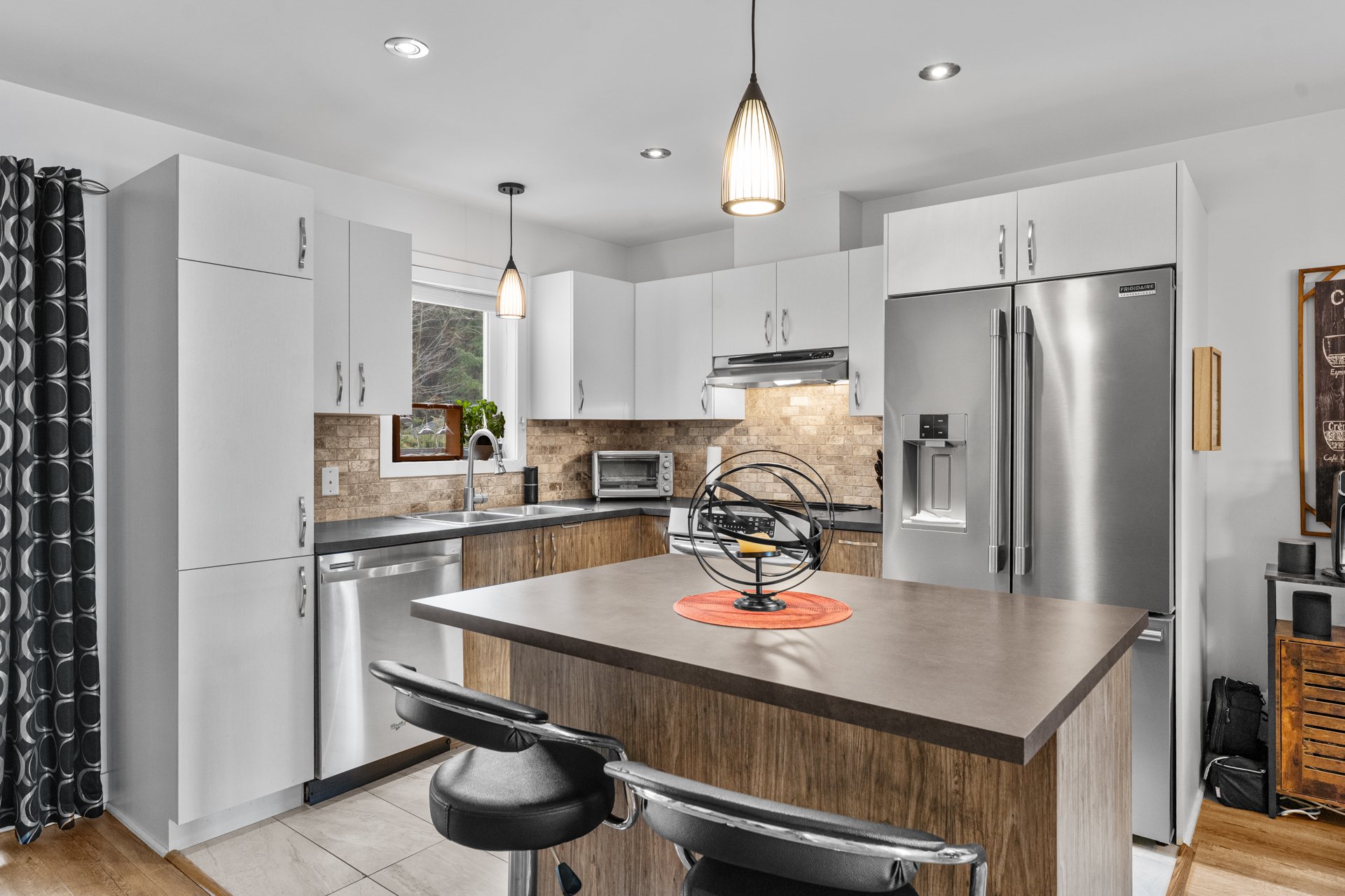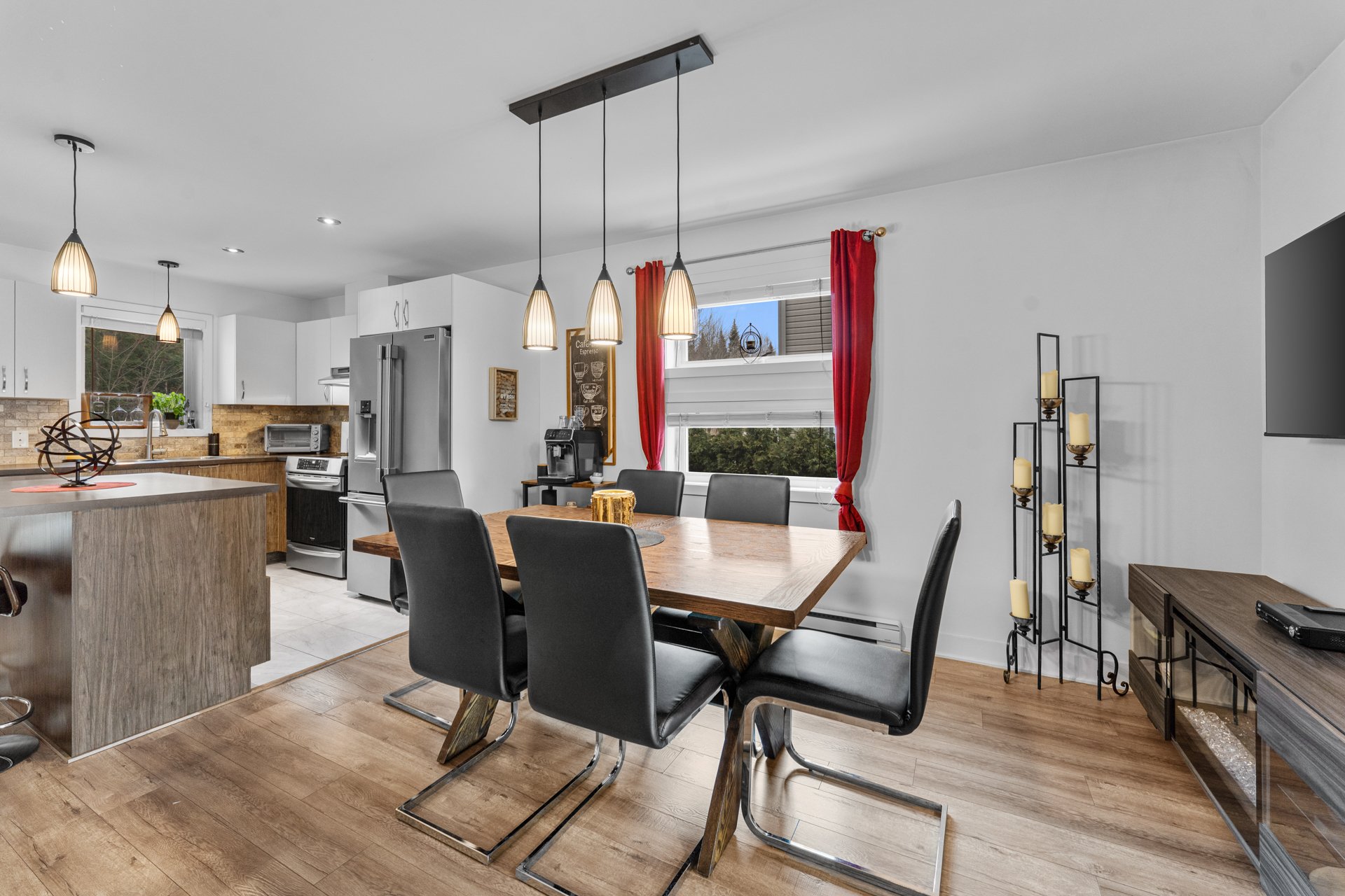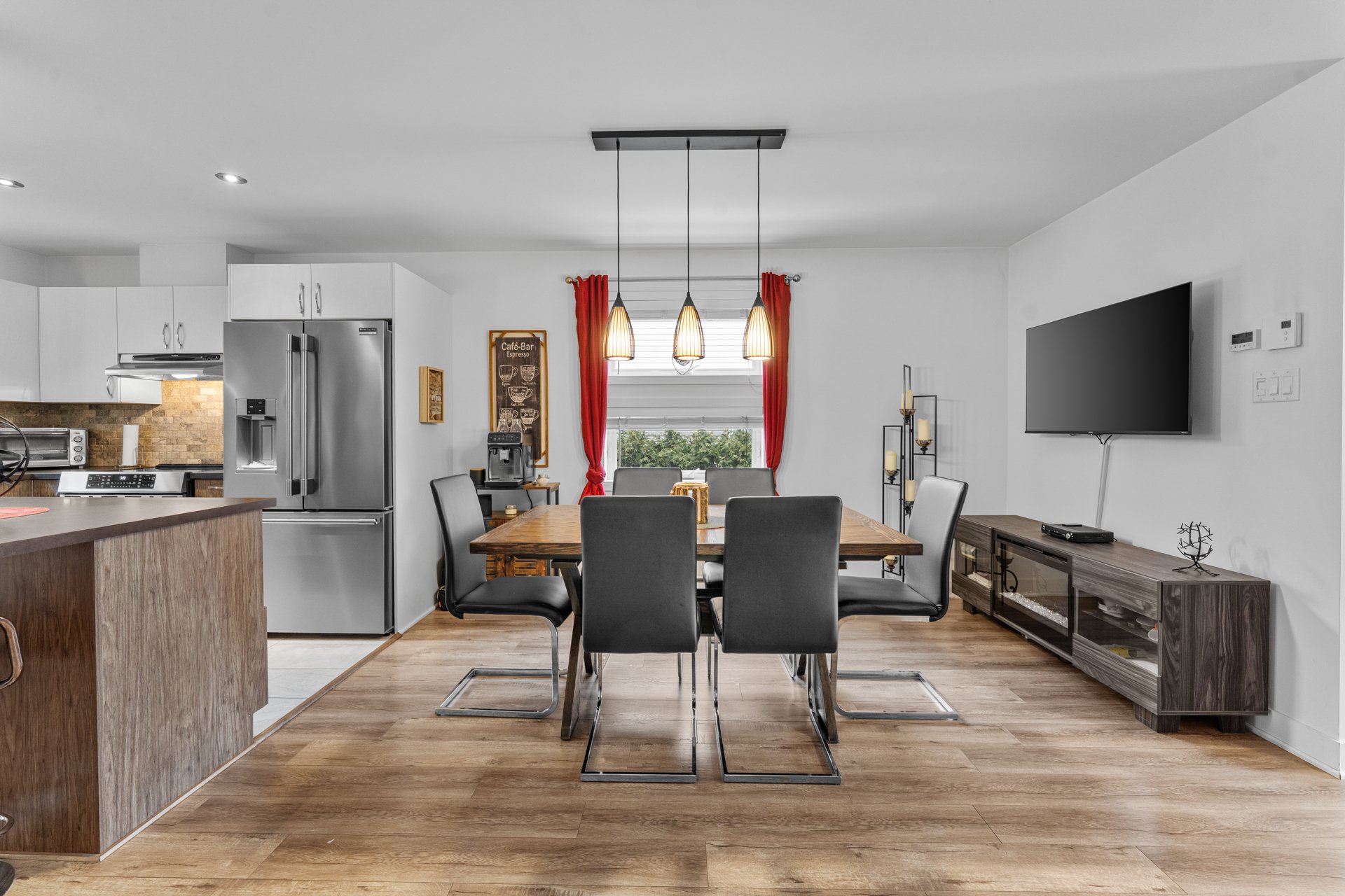 * Aire ouverte spacieuse : cuisine fonctionnelle, salle à