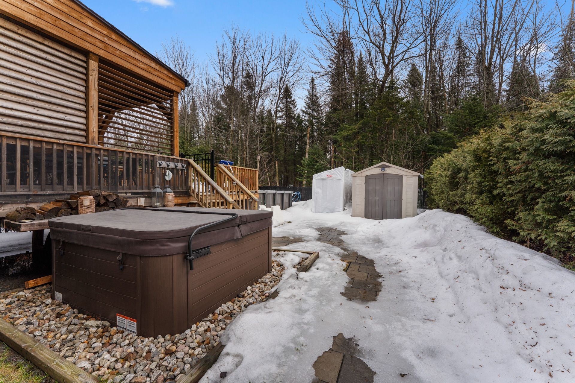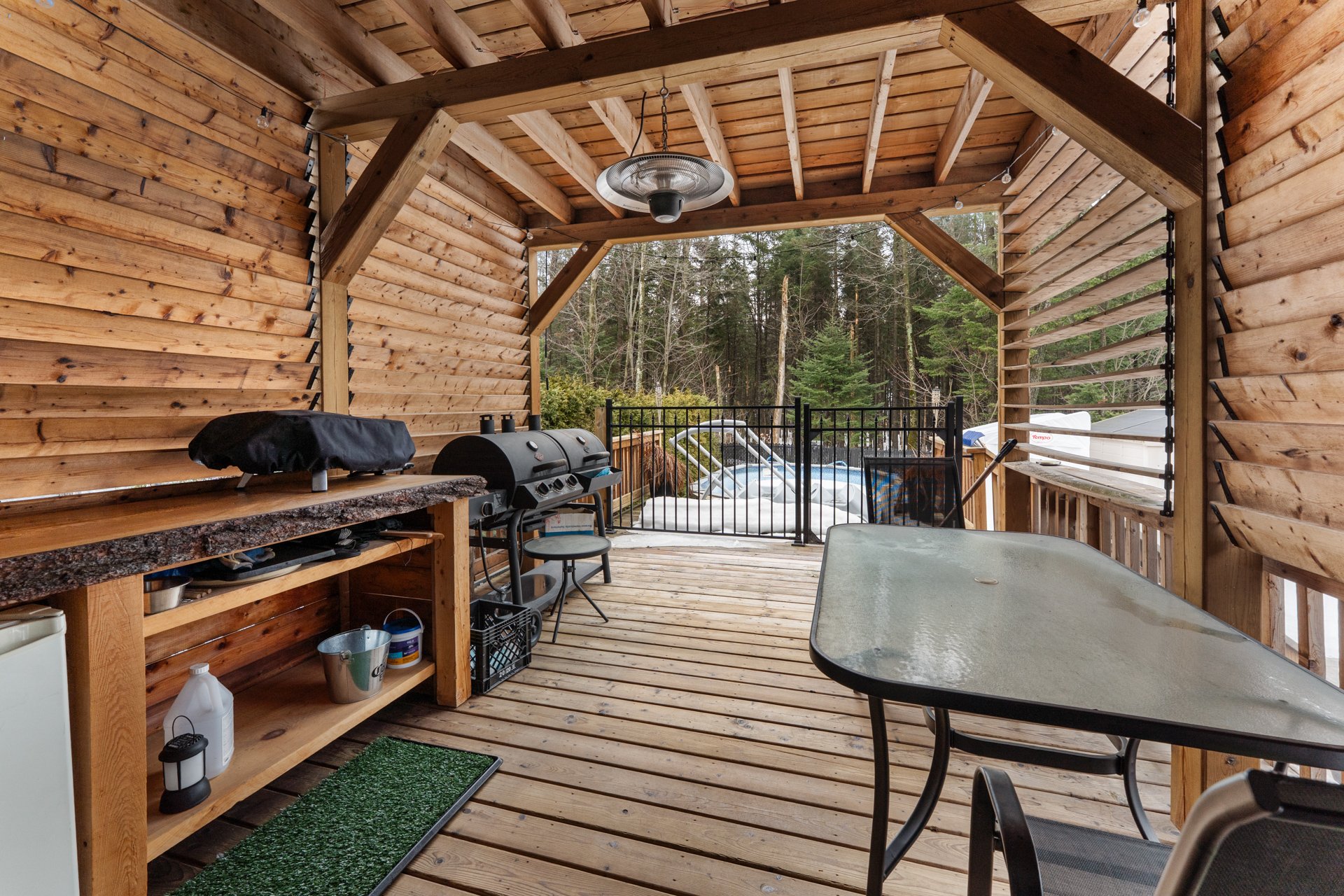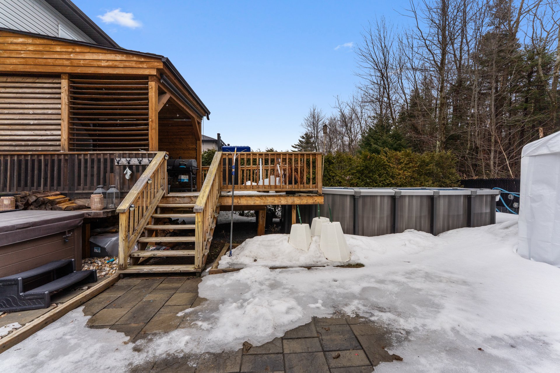Fixtures électriques, stores, hotte de cuisinière, aspirateur central et accessoires, échangeur d'air, thermopompe-murale, ouvre-porte de garage électrique, cabanon, piscine hors-terre et accessoires avec chauffe-eau (piscine) électrique, spa, supports muraux de TV (3)