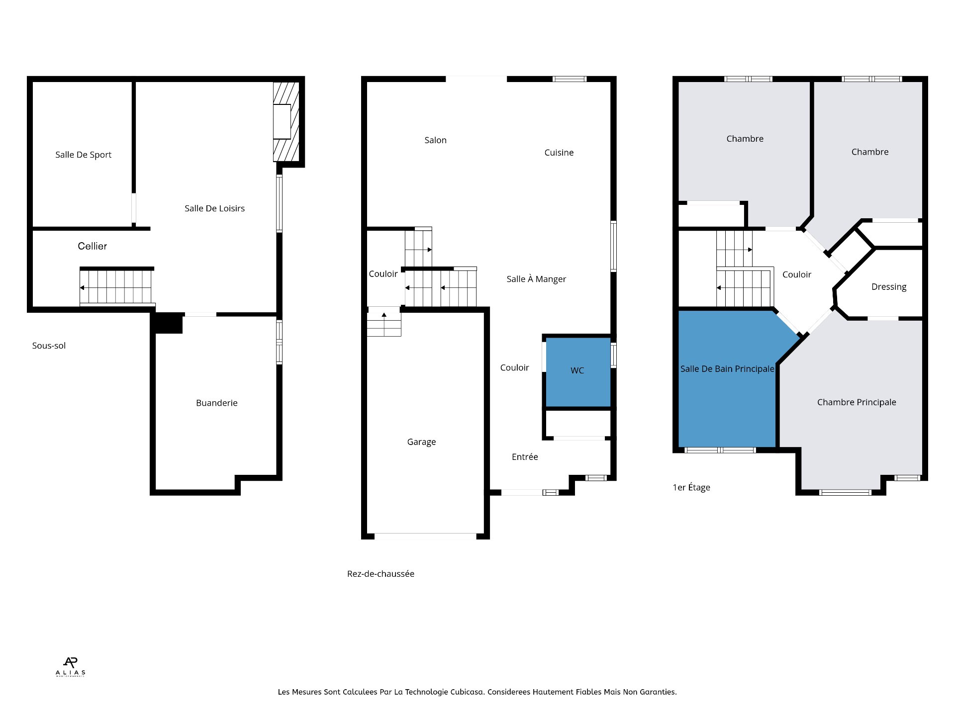 | Pièce | Dimensions | Niveau | Sol |