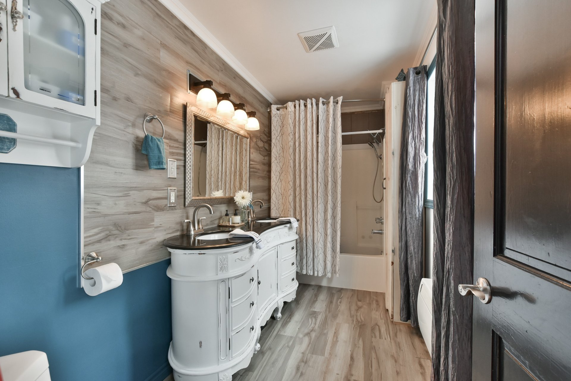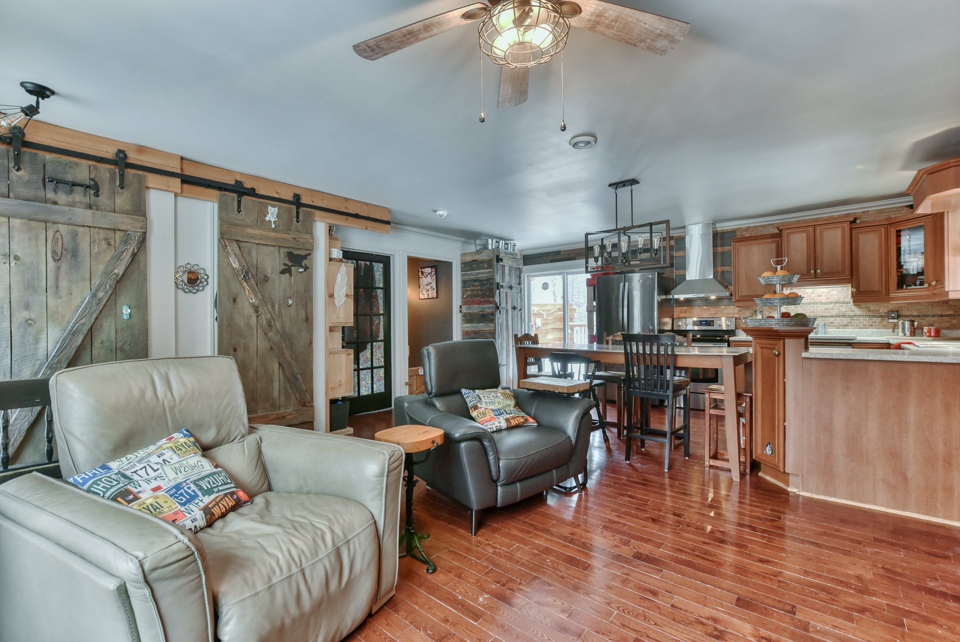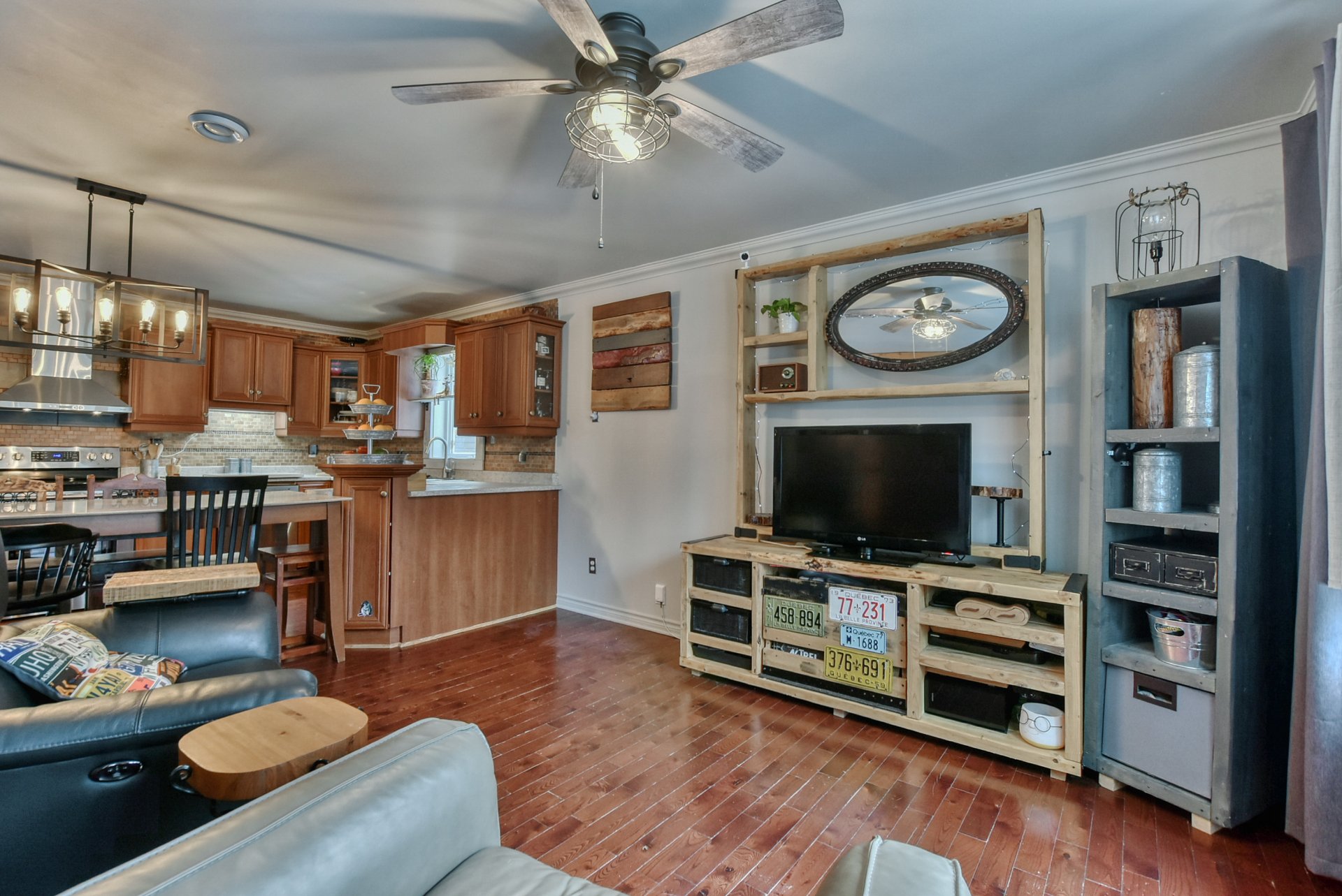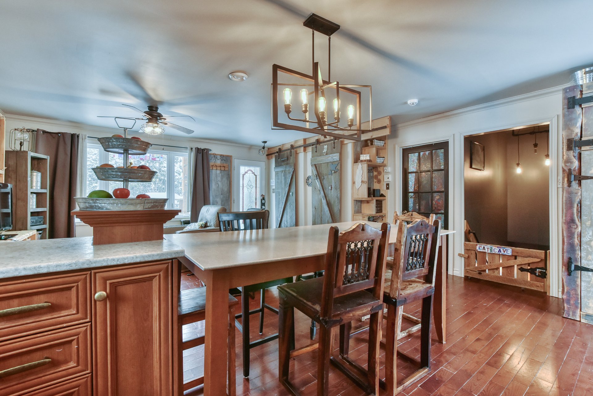 - L'intérieur met en valeur de beaux planchers de bois qui