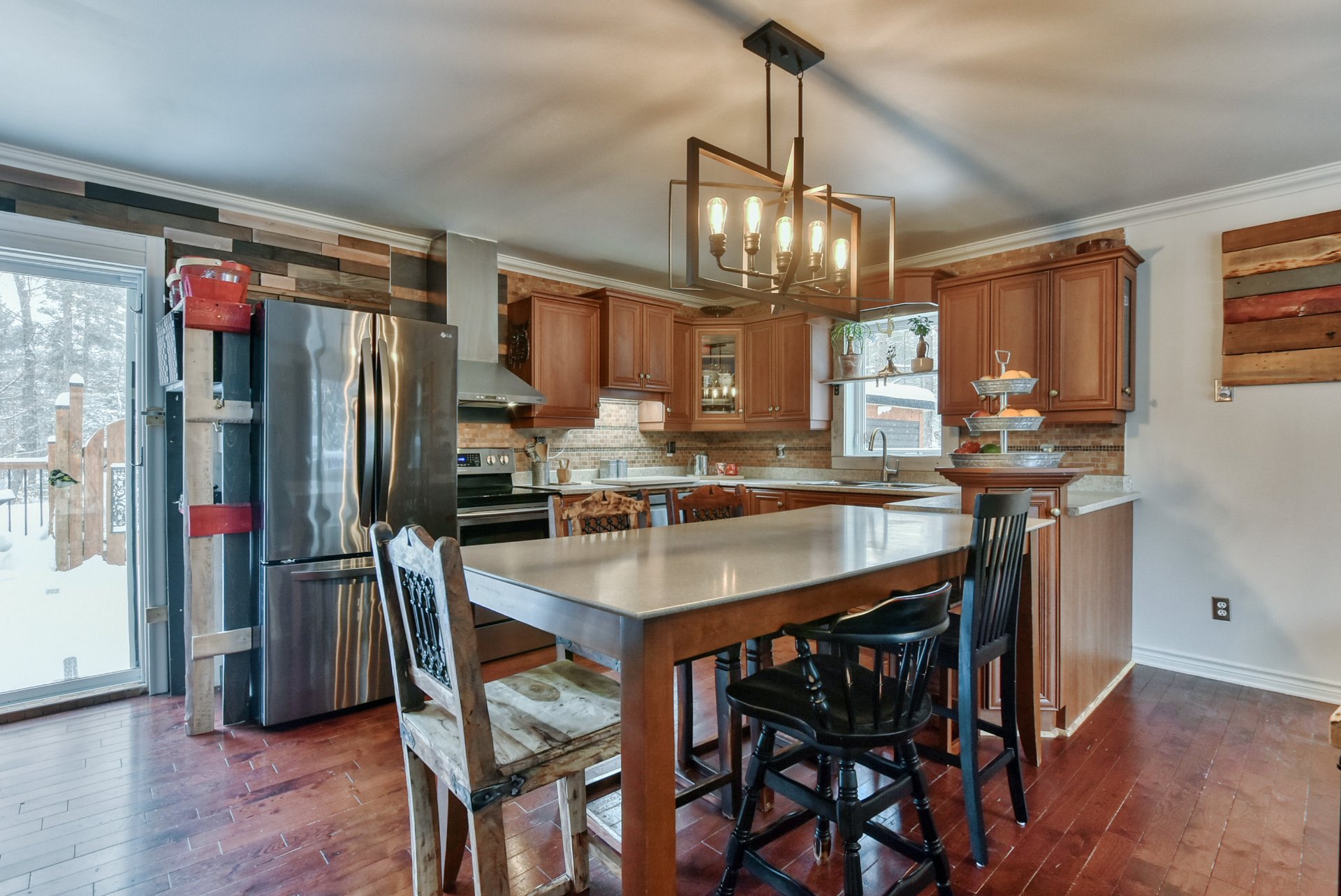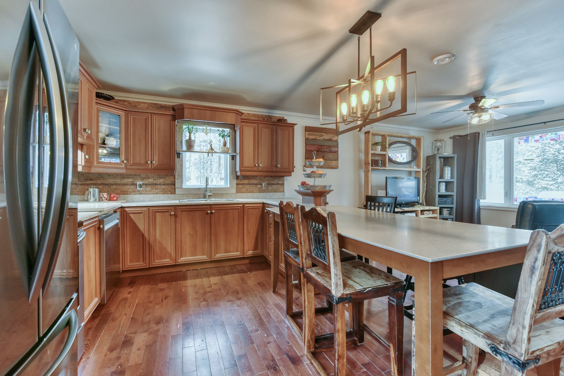 Coquette propriété confortable et chaleureuse, offrant de magnifiques planchers de bois et une cuisine fonctionnelle avec évier double et dosseret. Le terrain paysager, agrémenté de sapins et d'arbres matures, procure une belle intimité sans aucun voisin à l'arrière. Emplacement recherché, à proximité des écoles primaire et secondaire, d'un parc, d'un mont de ski alpin, ainsi que des sentiers de VTT et de motoneige.