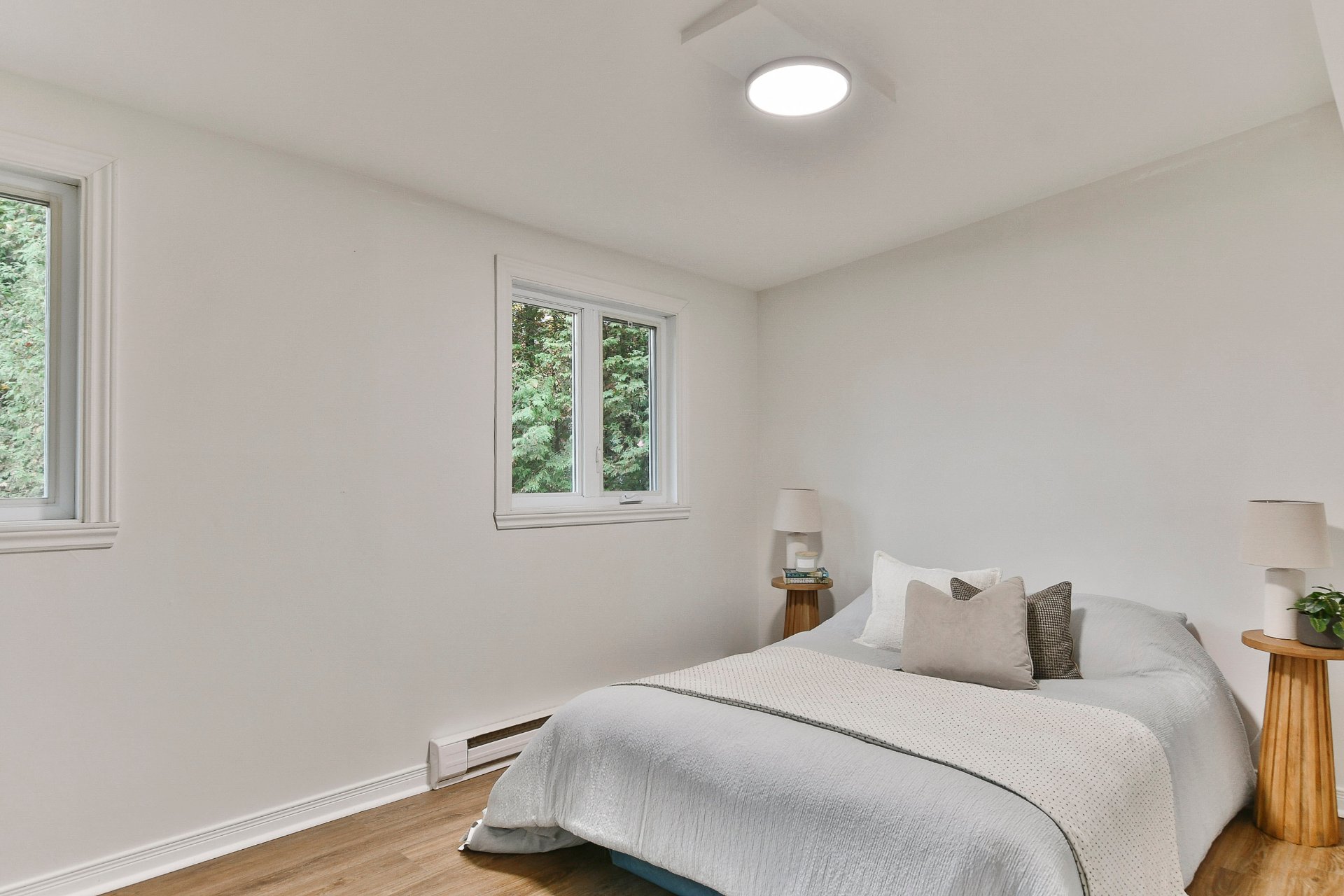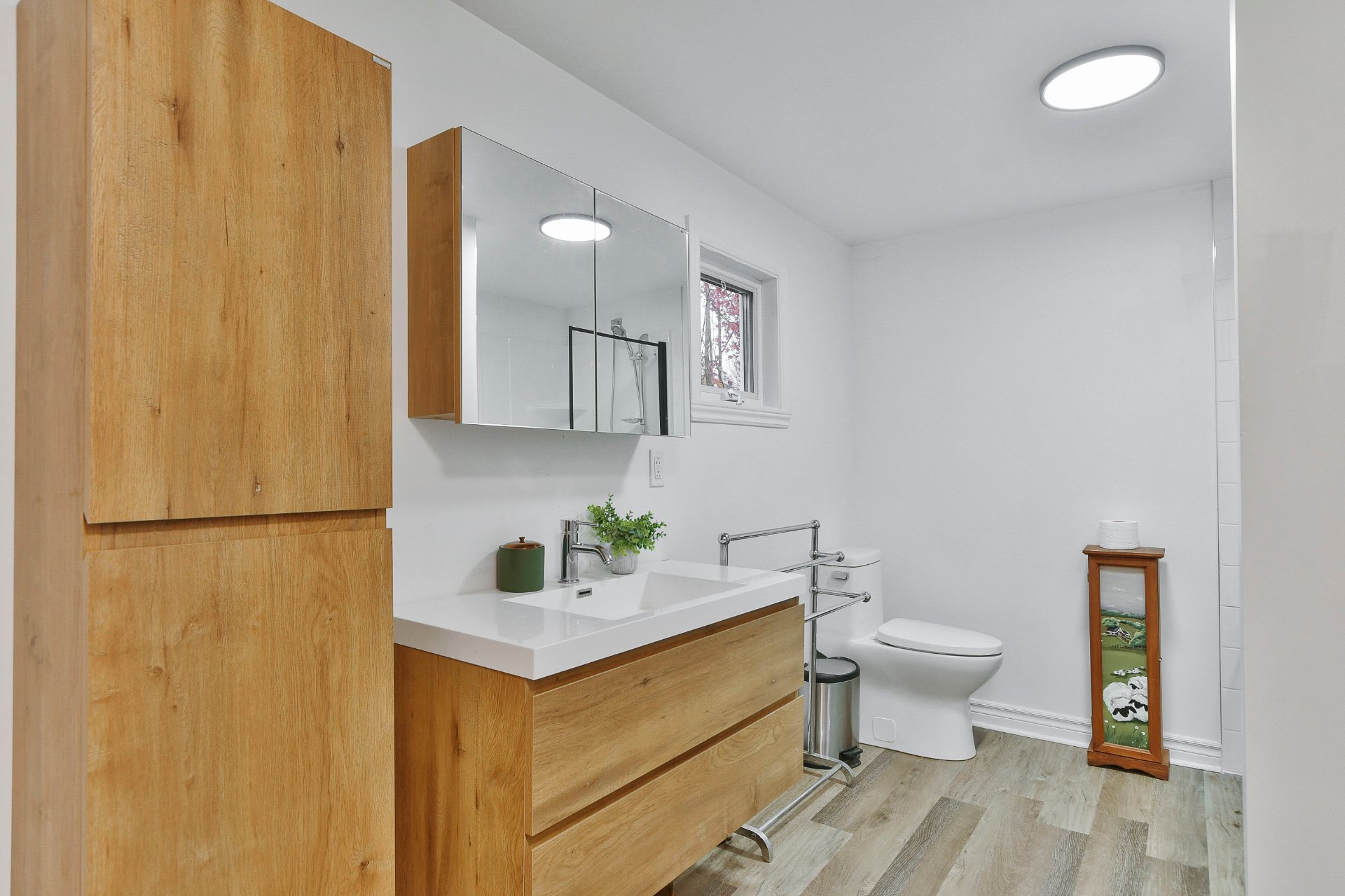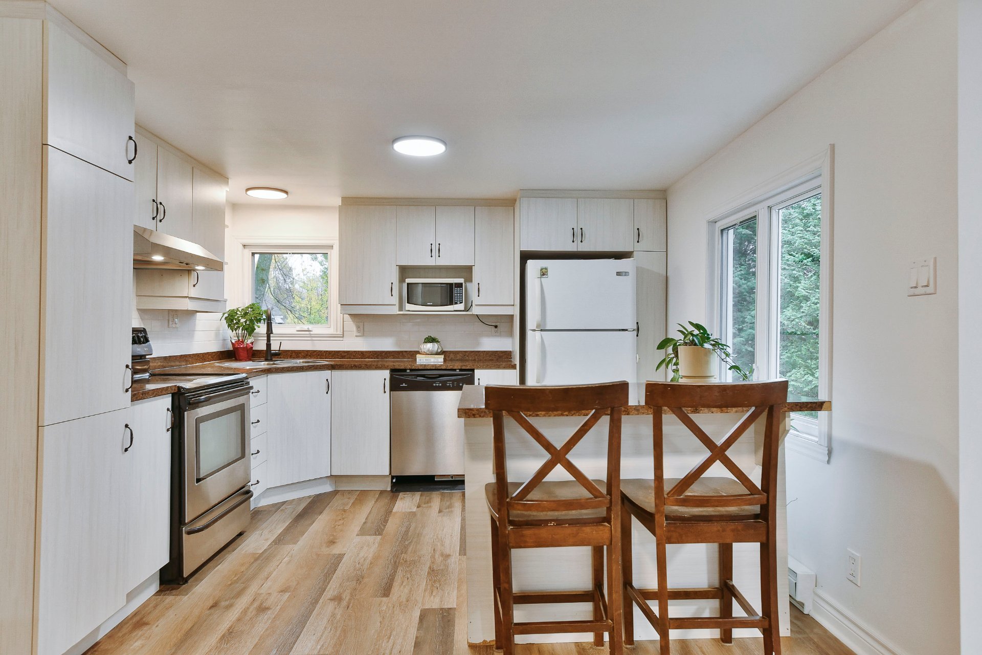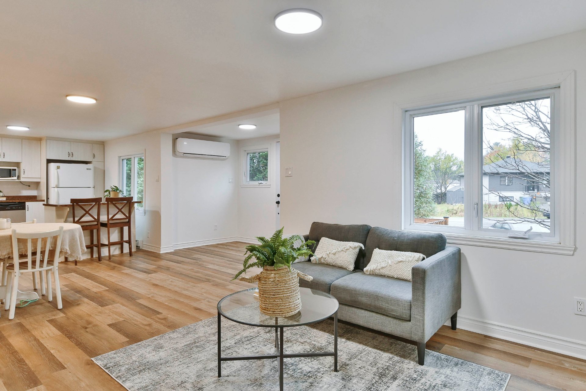 Cette propriété entièrement rénovée offre un cadre de vie à la fois pratique et chaleureux. Dotée de cinq chambres à coucher, elle convient parfaitement aux familles nombreuses ou à ceux qui recherchent des espaces polyvalents. Les deux thermopompes assurent un confort optimal tout au long de l'année, tandis que les fenêtres récentes apportent luminosité et efficacité énergétique. Un garage ajoute une touche de commodité au quotidien. une cour arrière intime, bordée d'arbres matures, crée un espace privé et paisible, idéal pour profiter pleinement des beaux jours. Une maison fonctionnelle, bien pensée, où il fait bon s'installer.