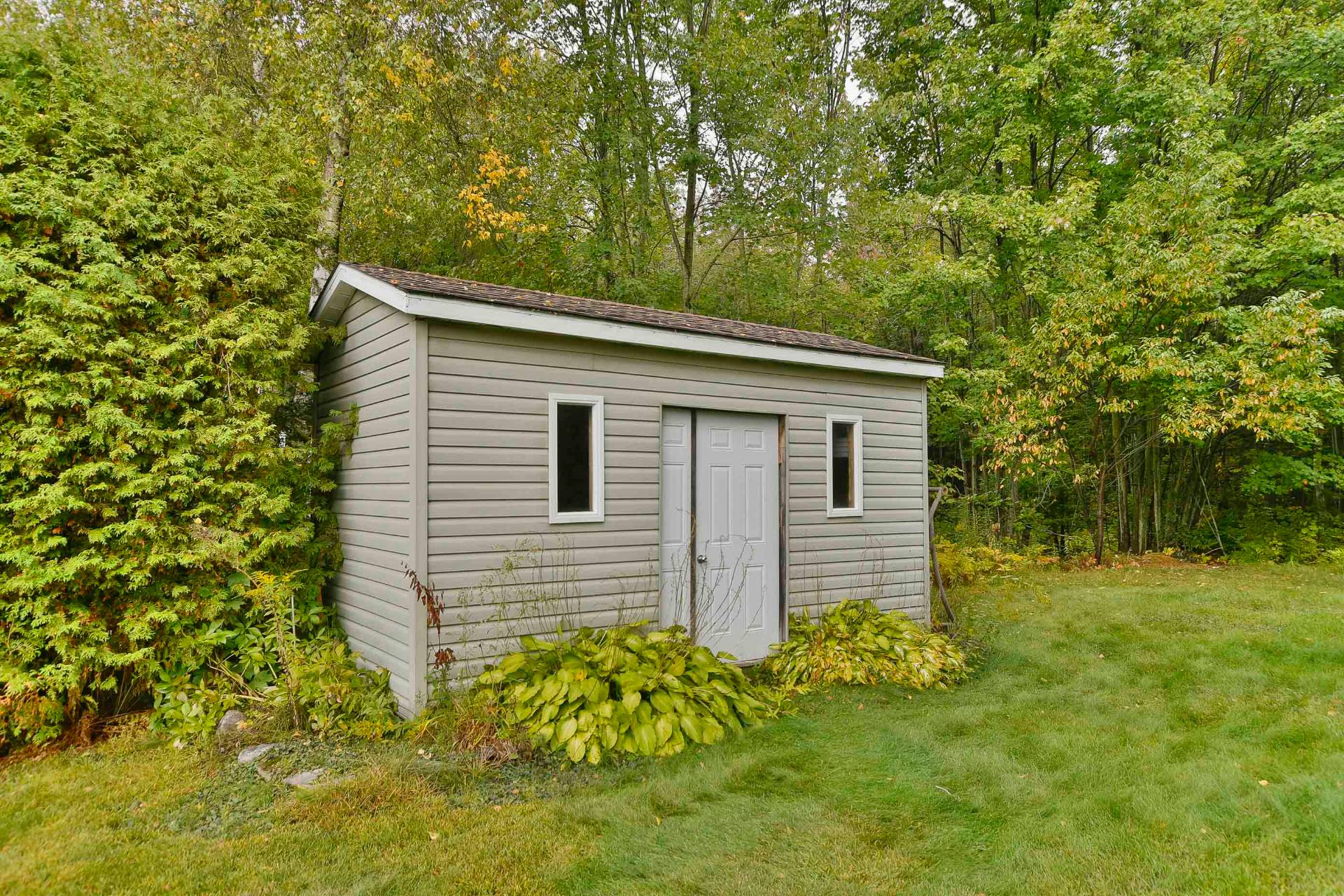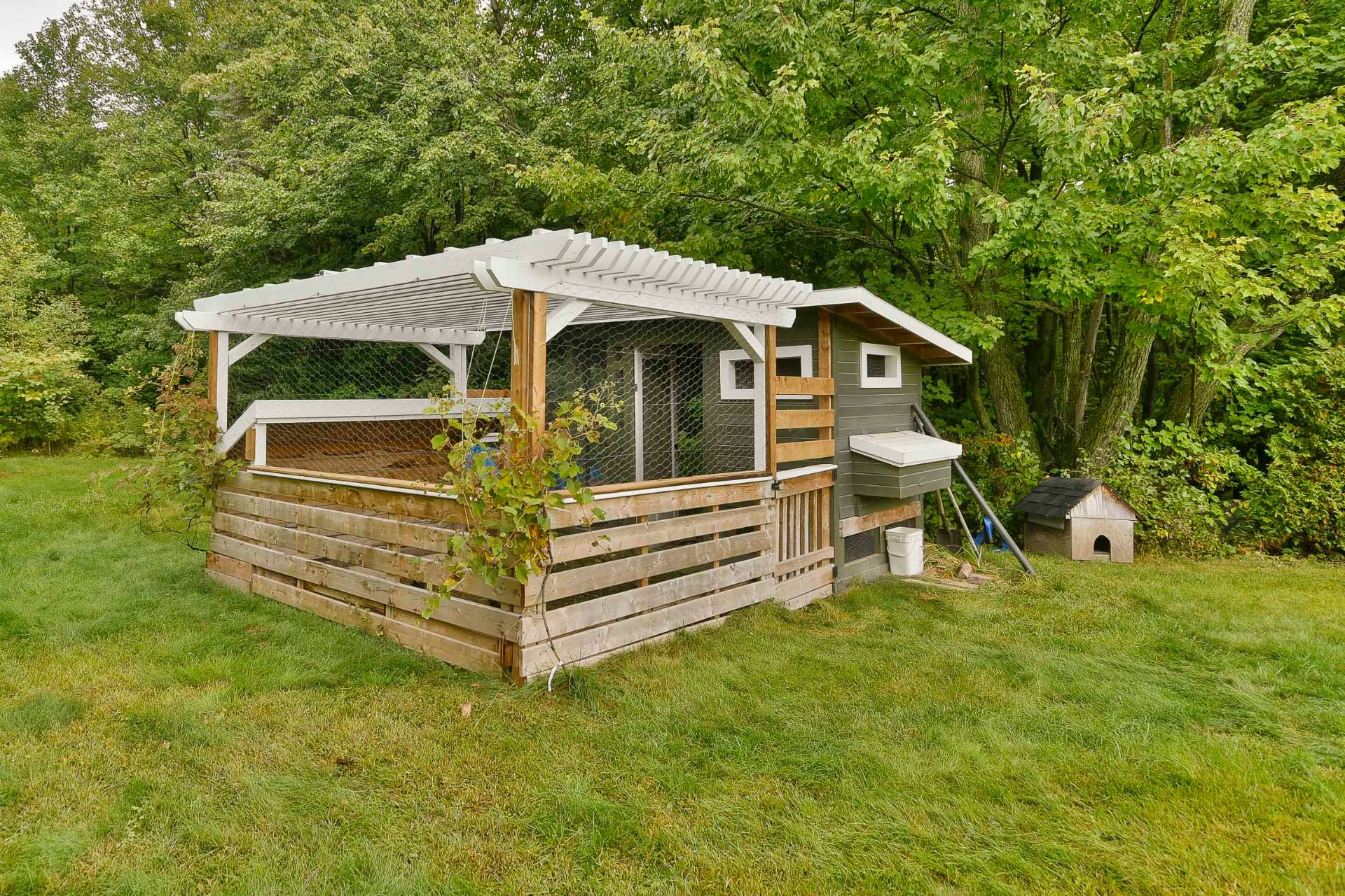 Les installations permanentes de chauffage, d'électricité et d'éclairage, tringles à rideaux, stores ,2 tabourets de comptoir, caméra, thermopompe murale, poêle au bois, cabanon, poulailler et piscine hors terre et accessoires.