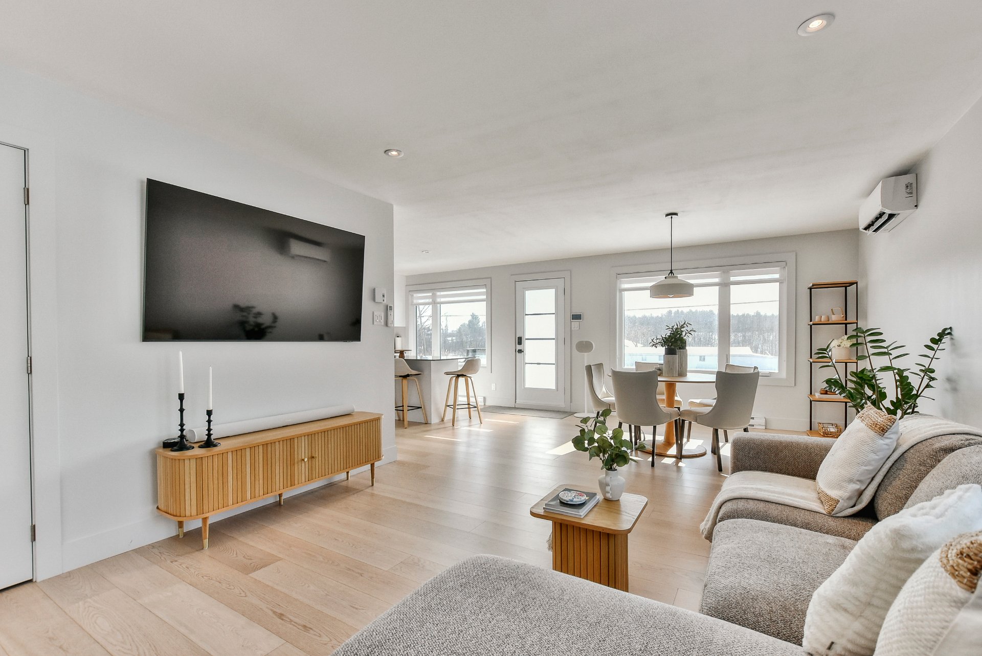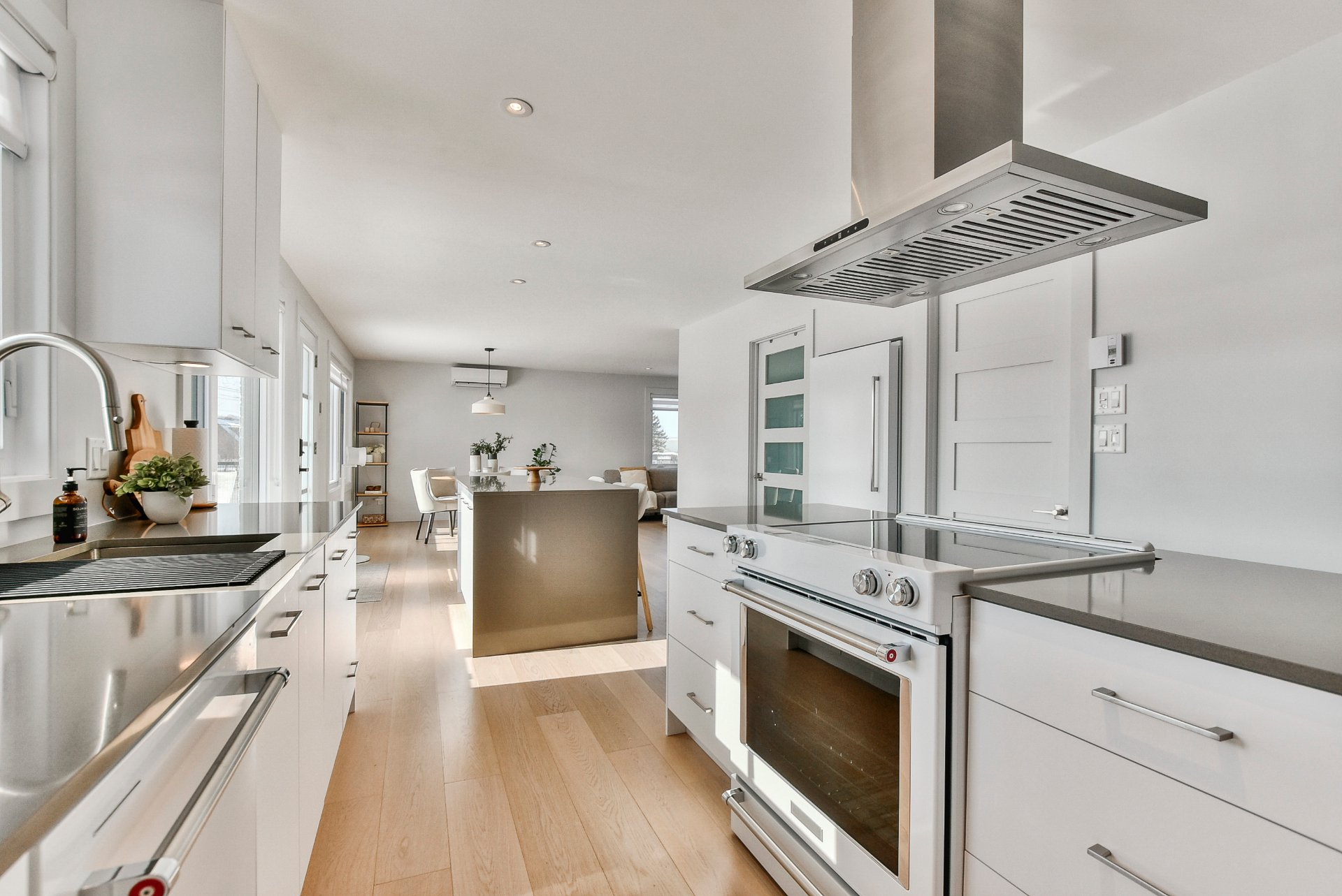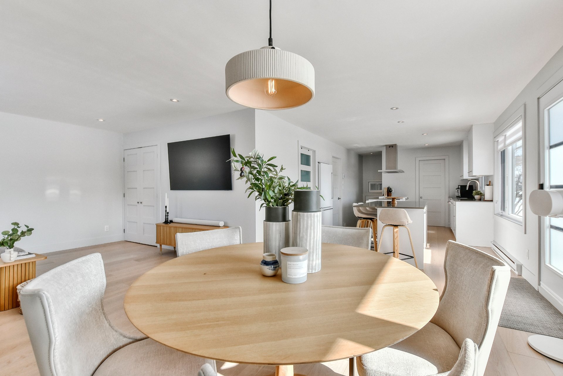 - À l'intérieur, l'aire ouverte baignée de lumière