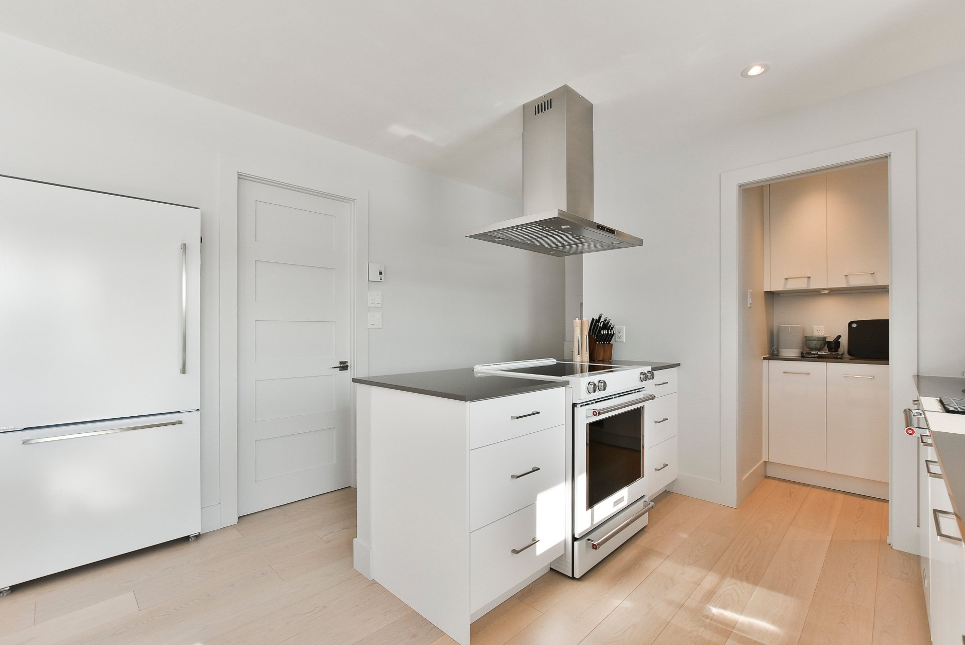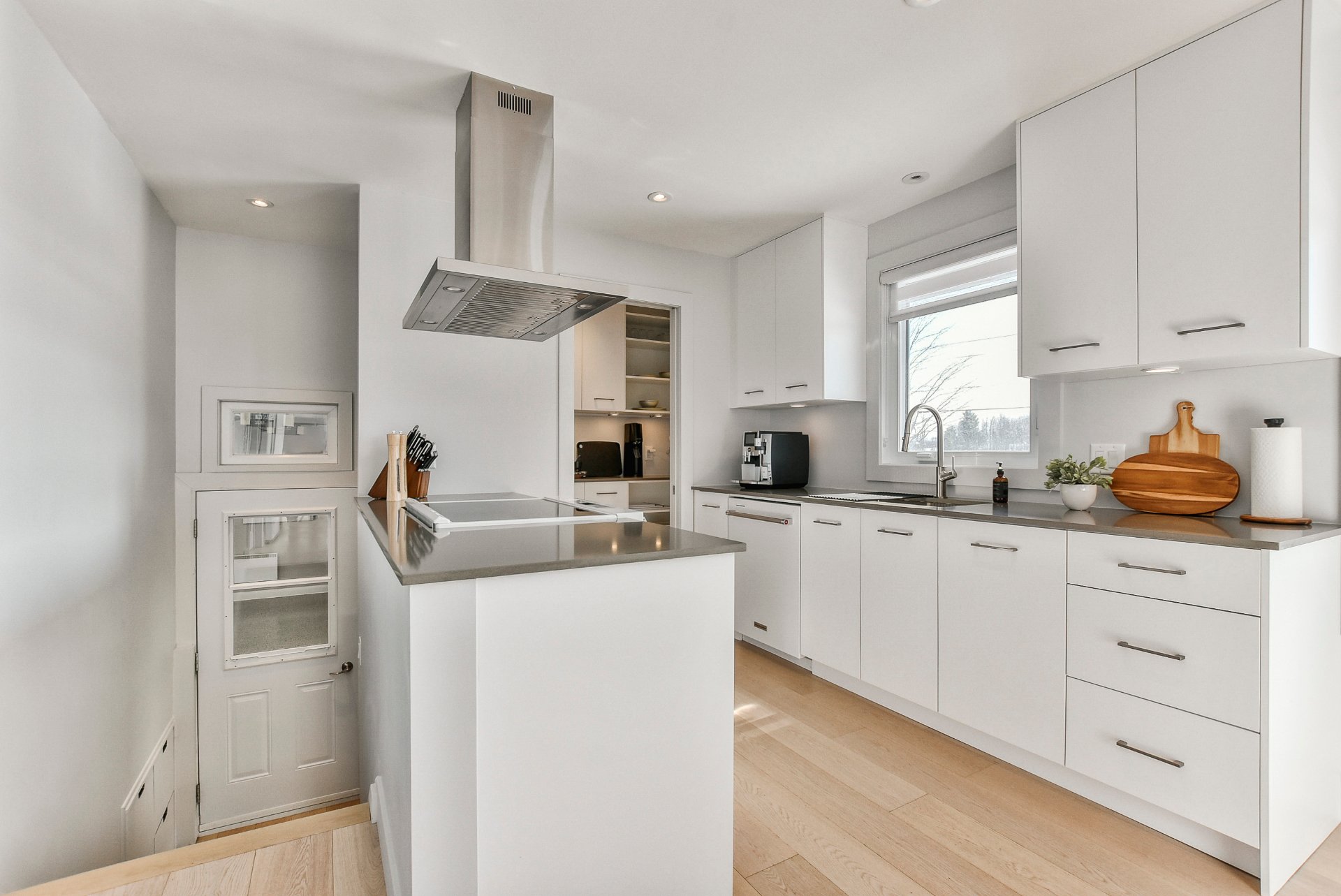 comptoirs en quartz et ses deux îlots généreux, parfaits