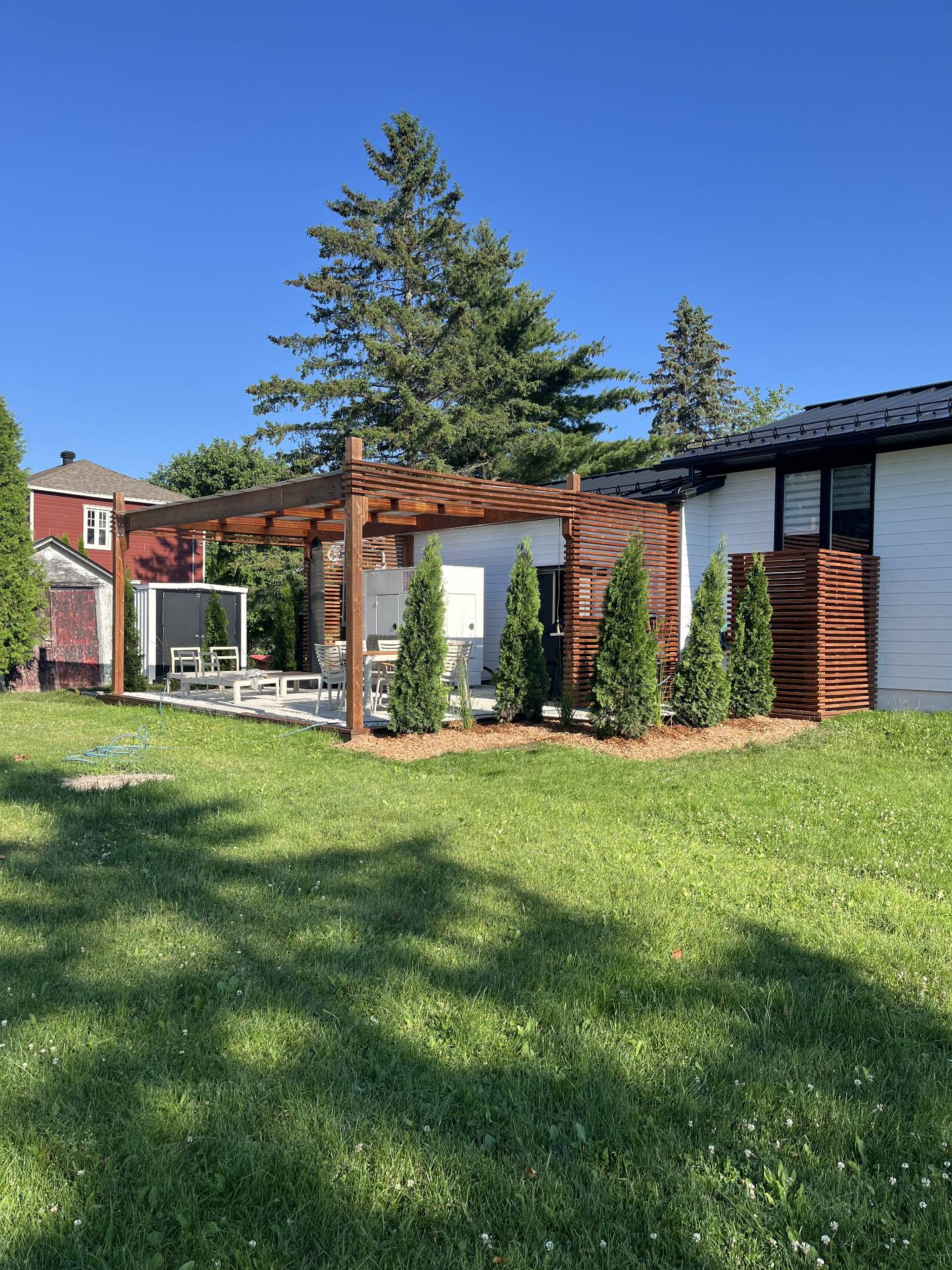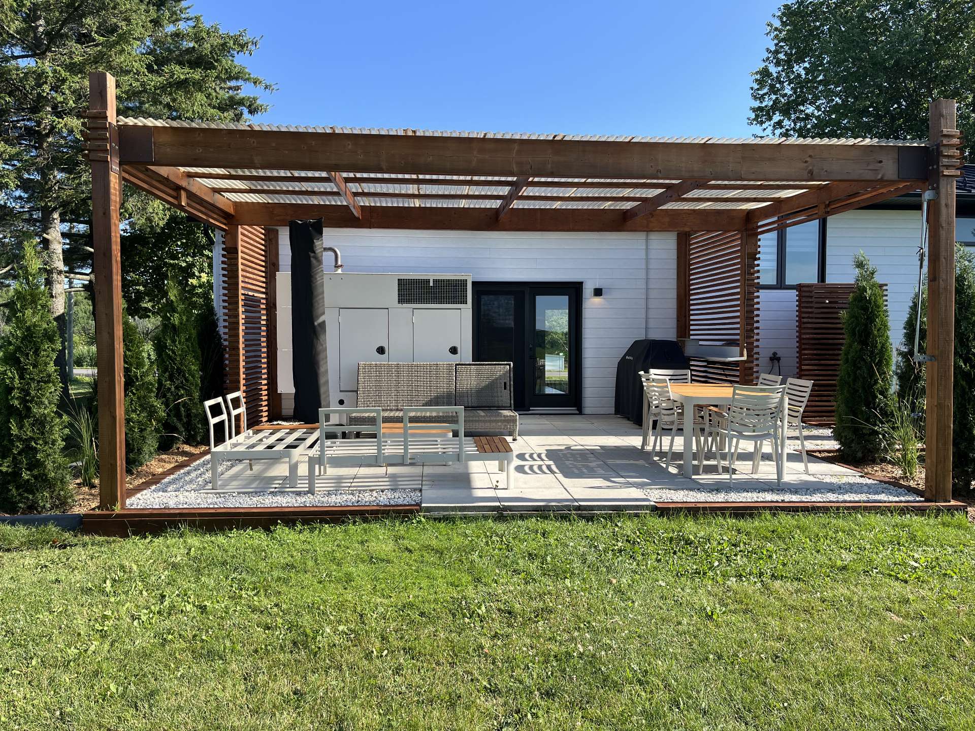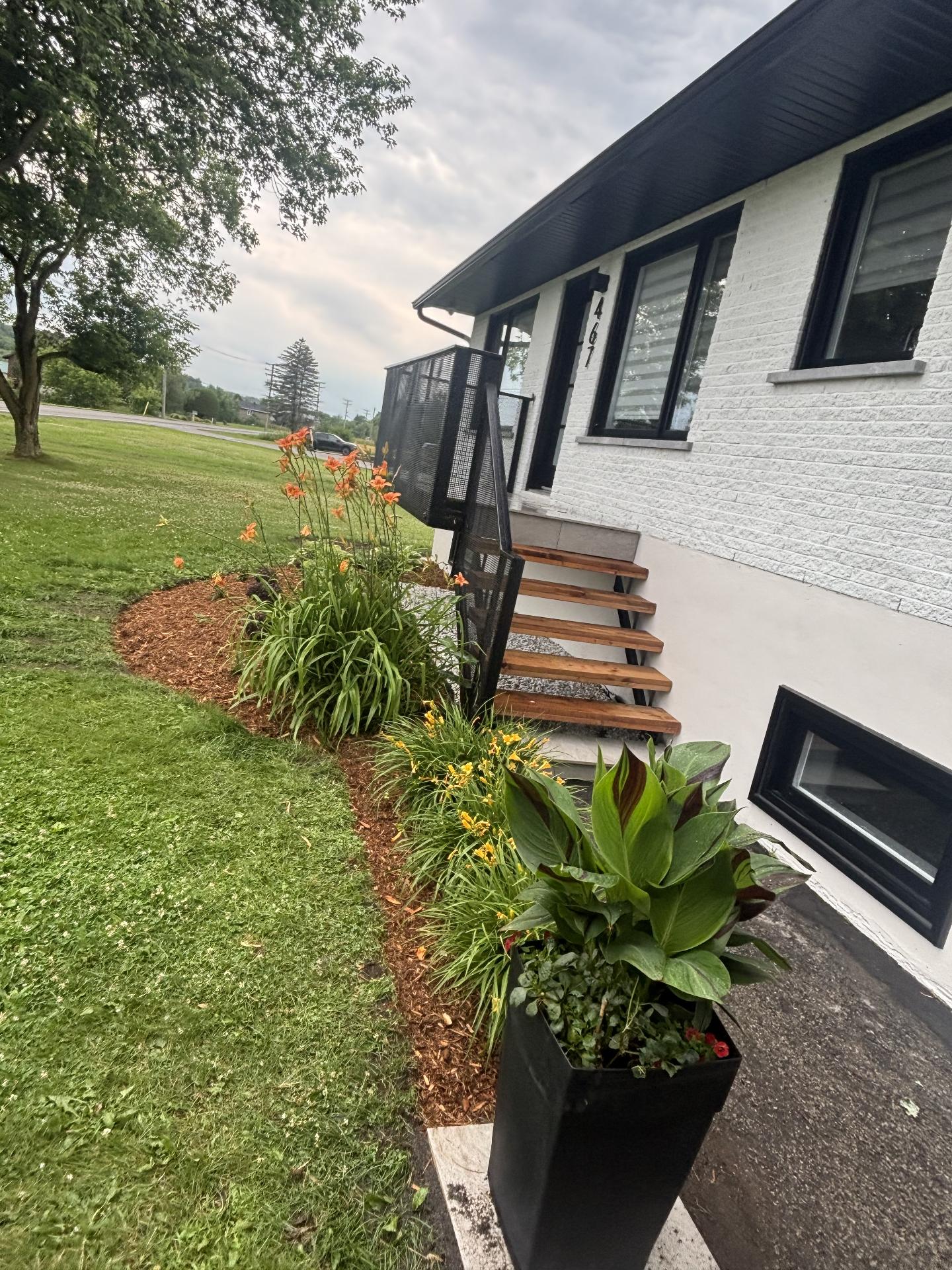 - À l'extérieur, l'aménagement paysager est soigneusement