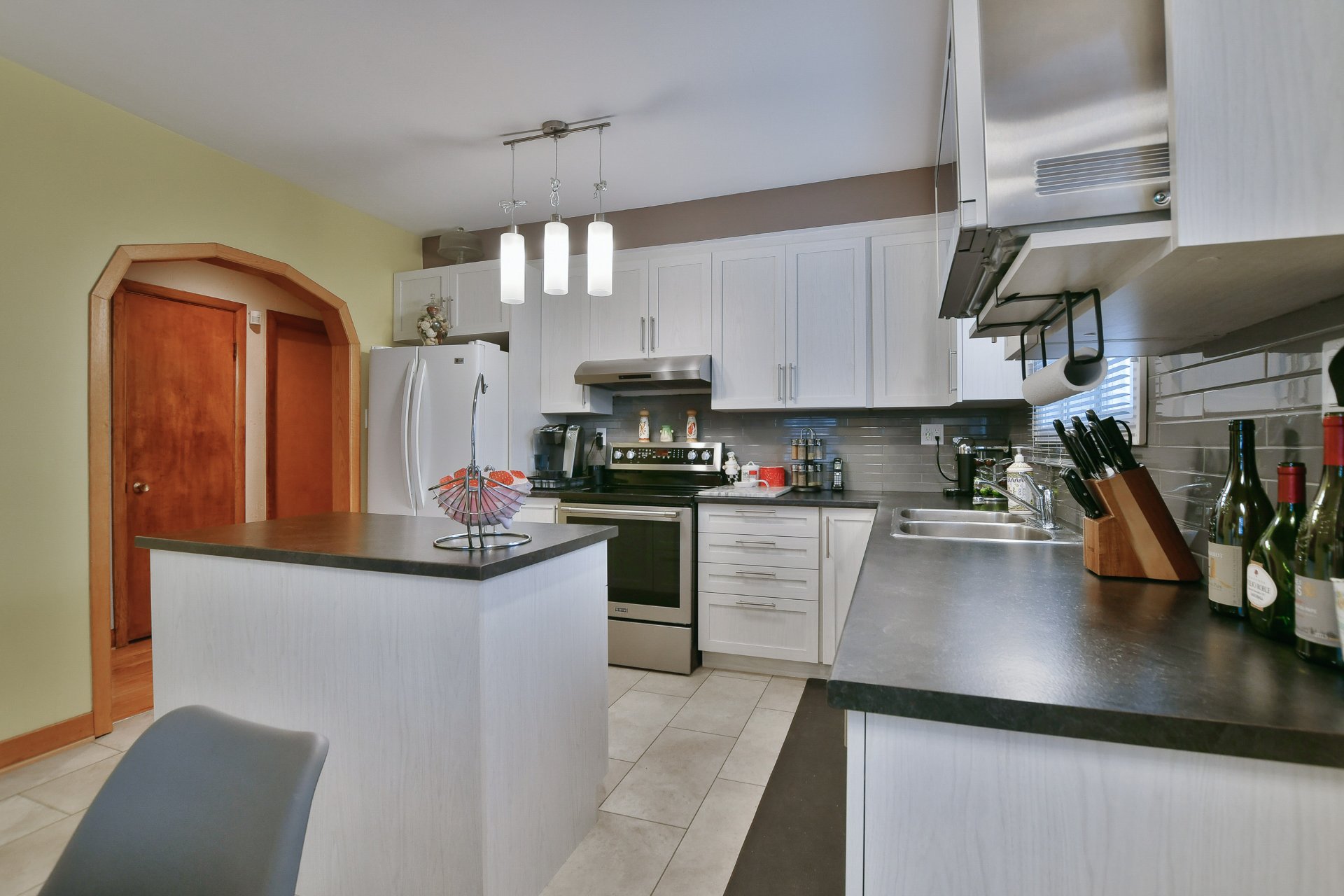 - Tandis que la cuisine rénovée avec îlot central invite à