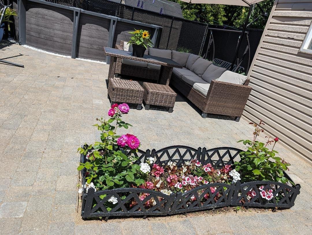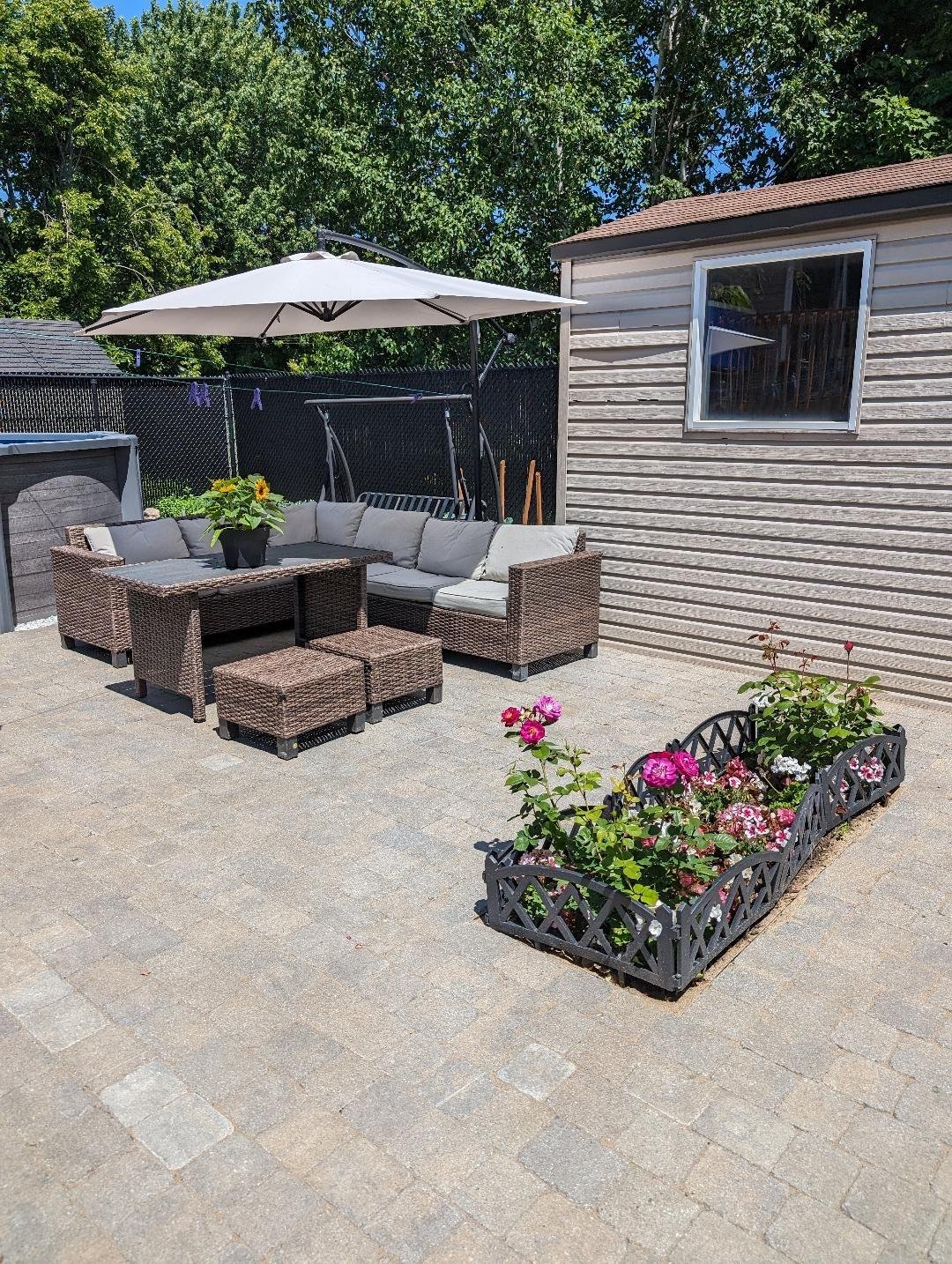À l'extérieur, profitez d'une cour aménagée avec pavé et