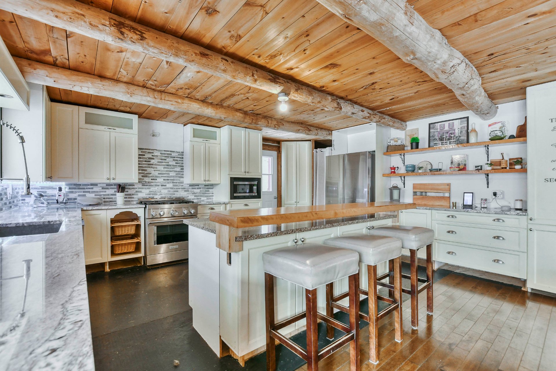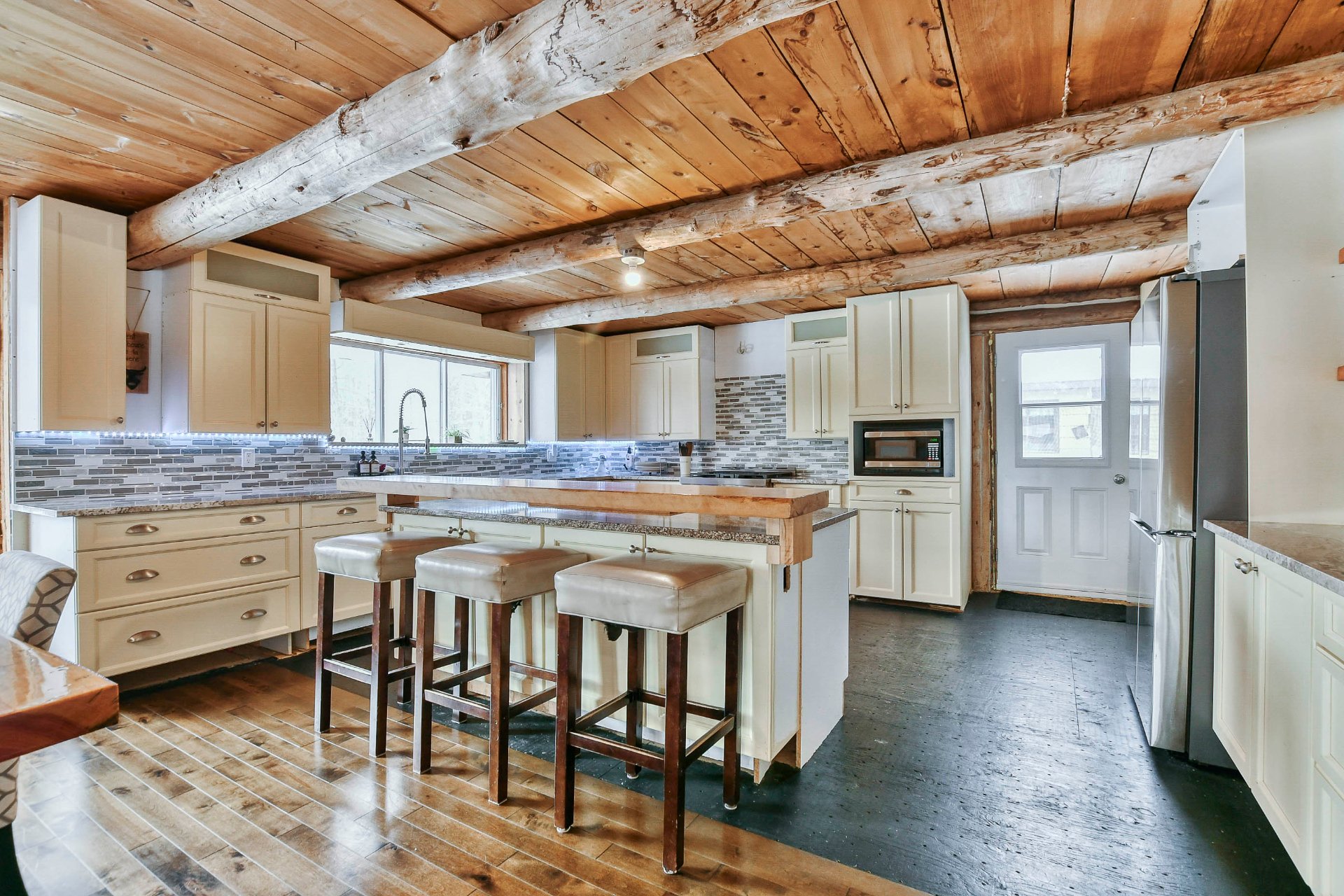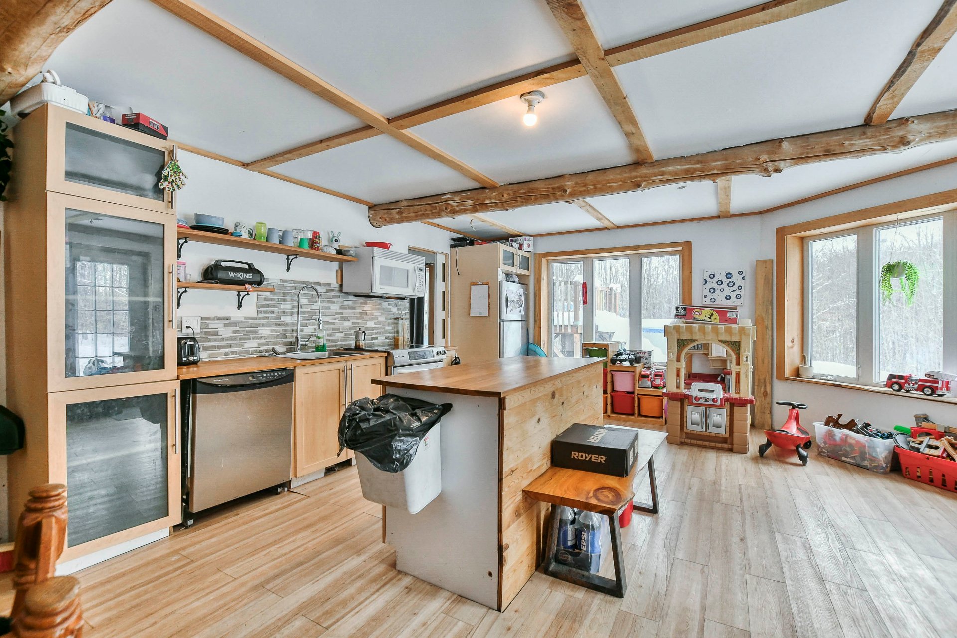 - Construite avec des poutres naturelles, cette propriété