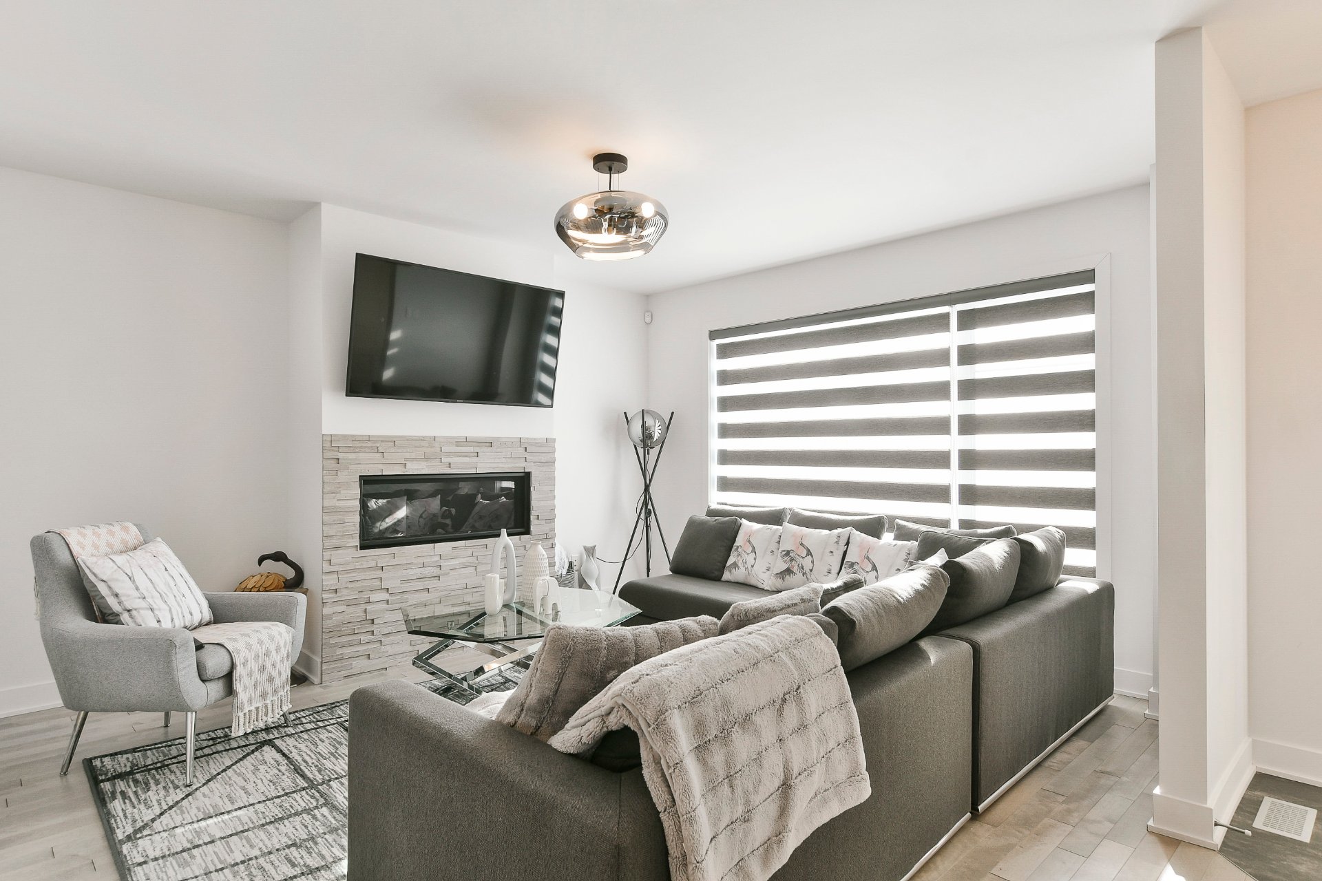 - De superbes planchers de bois se retrouvent au salon, à