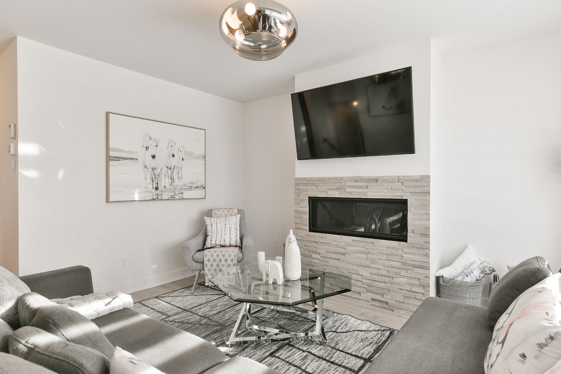 - Le foyer au gaz, la thermopompe centrale et l'aspirateur