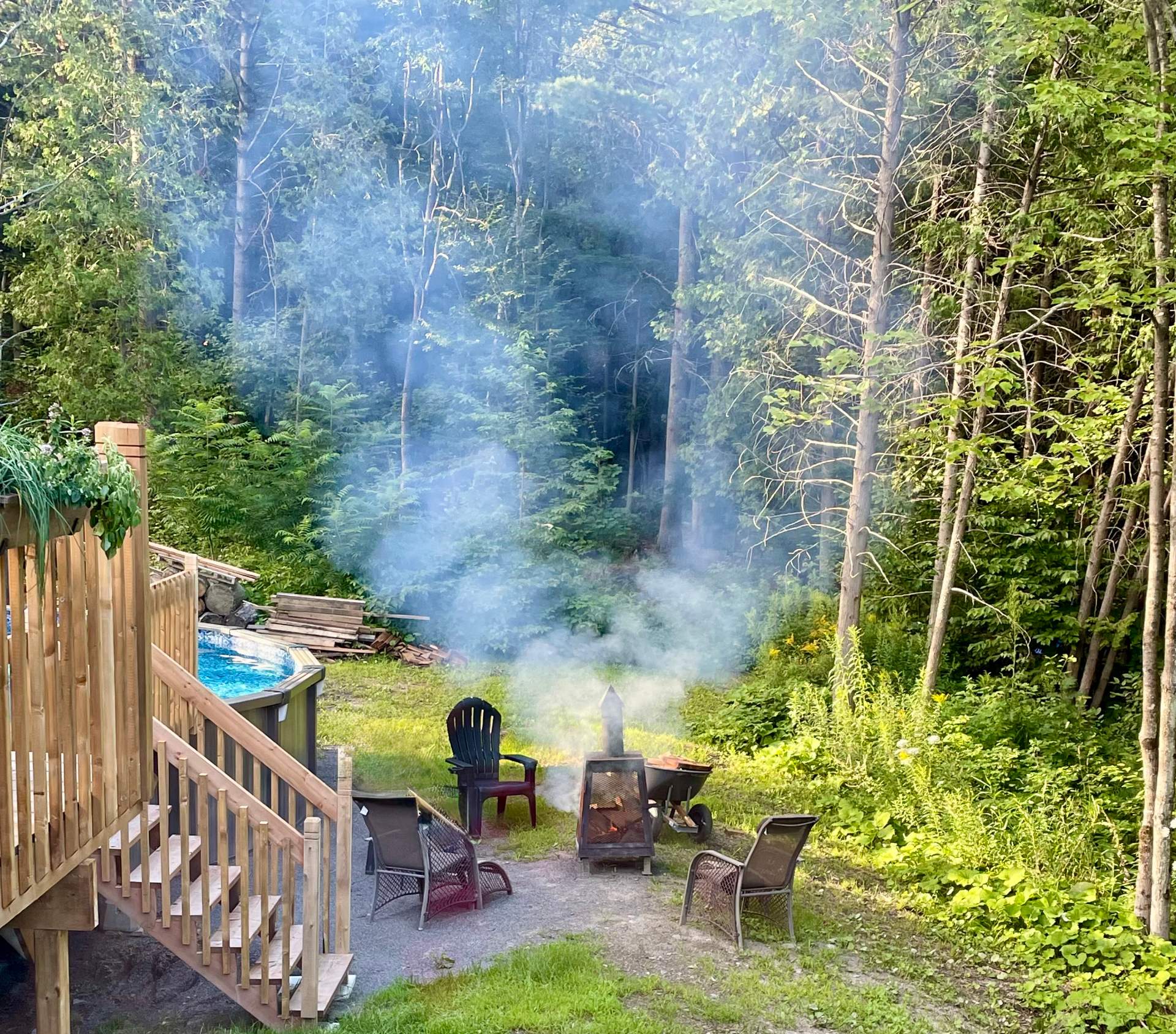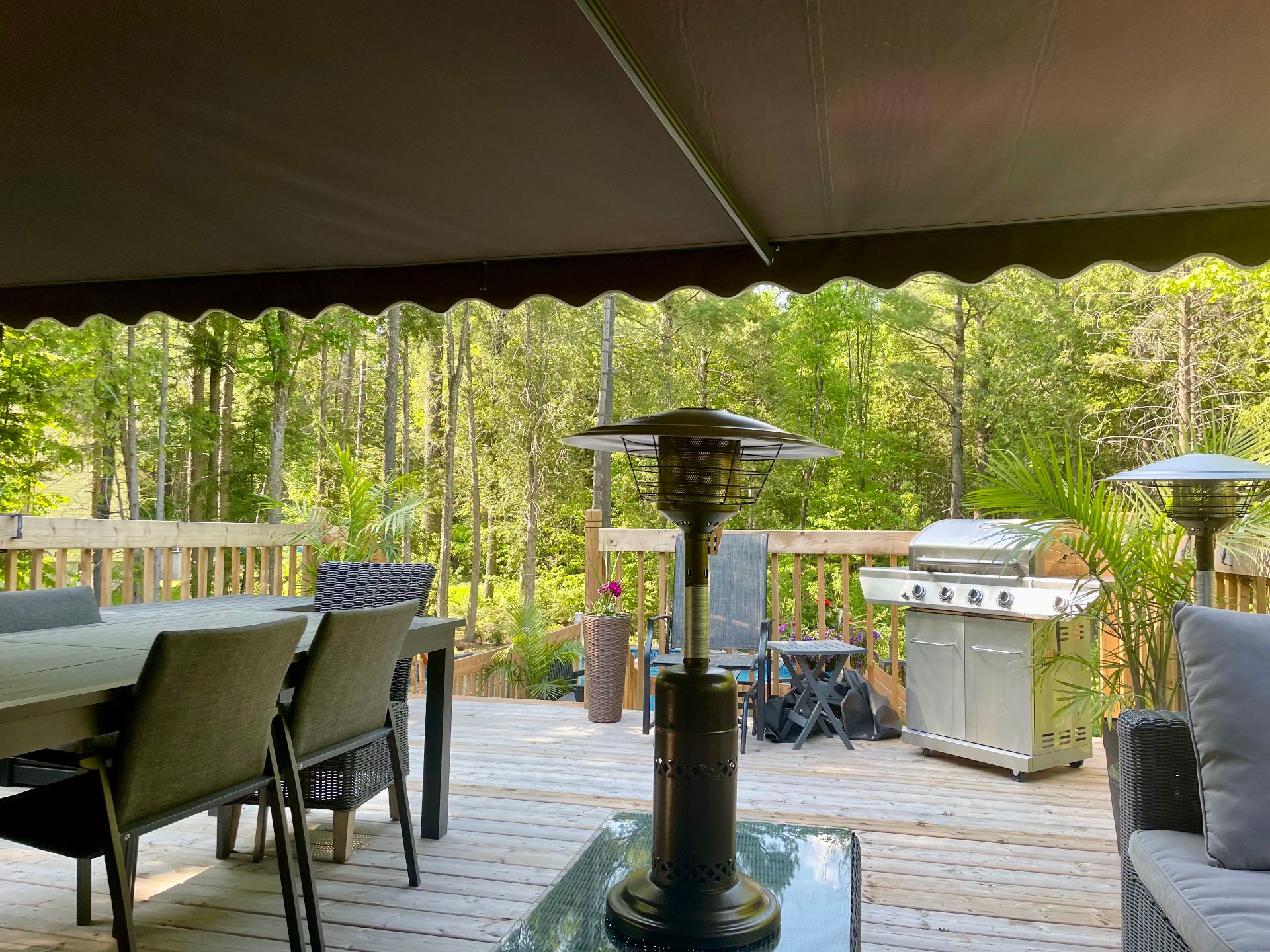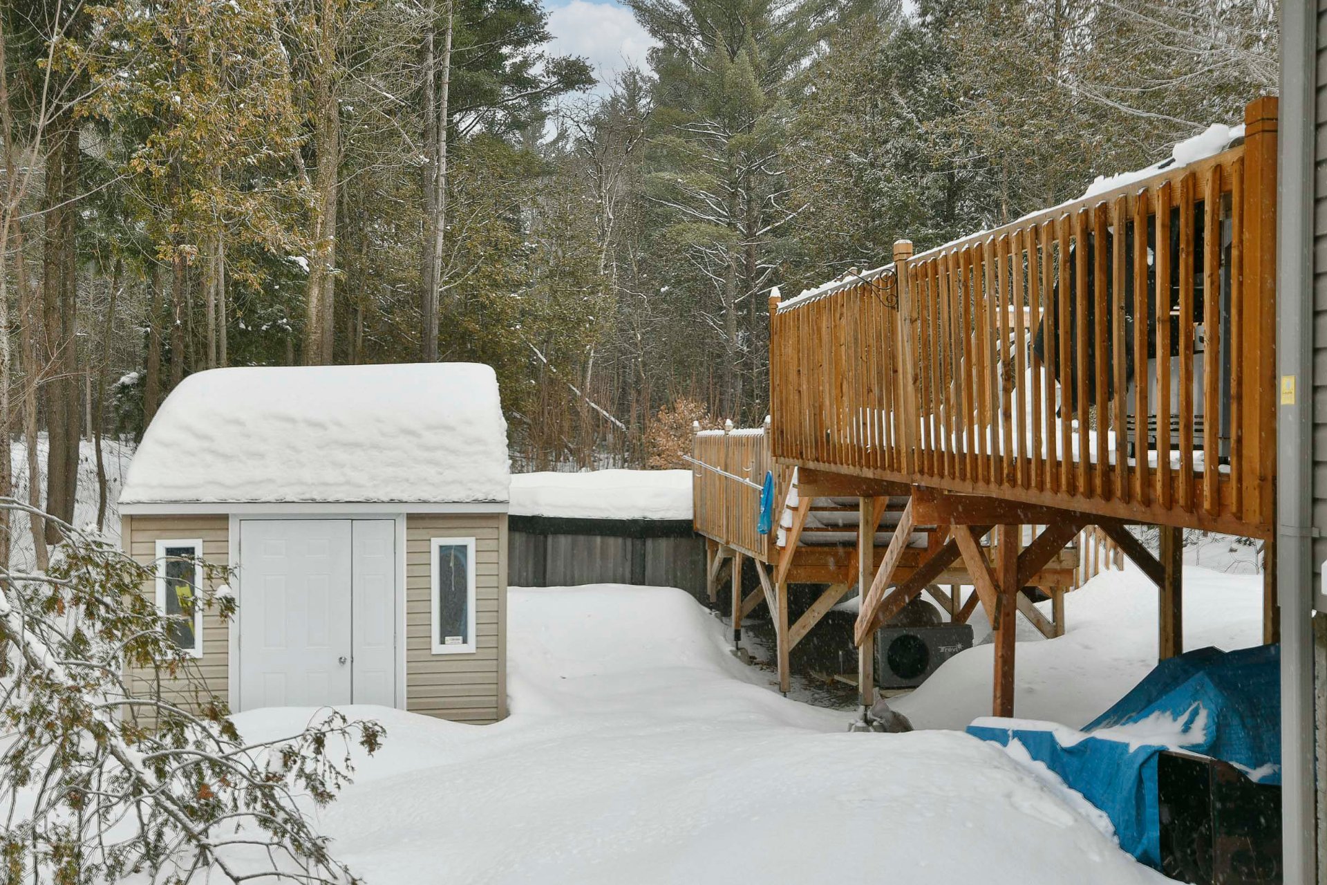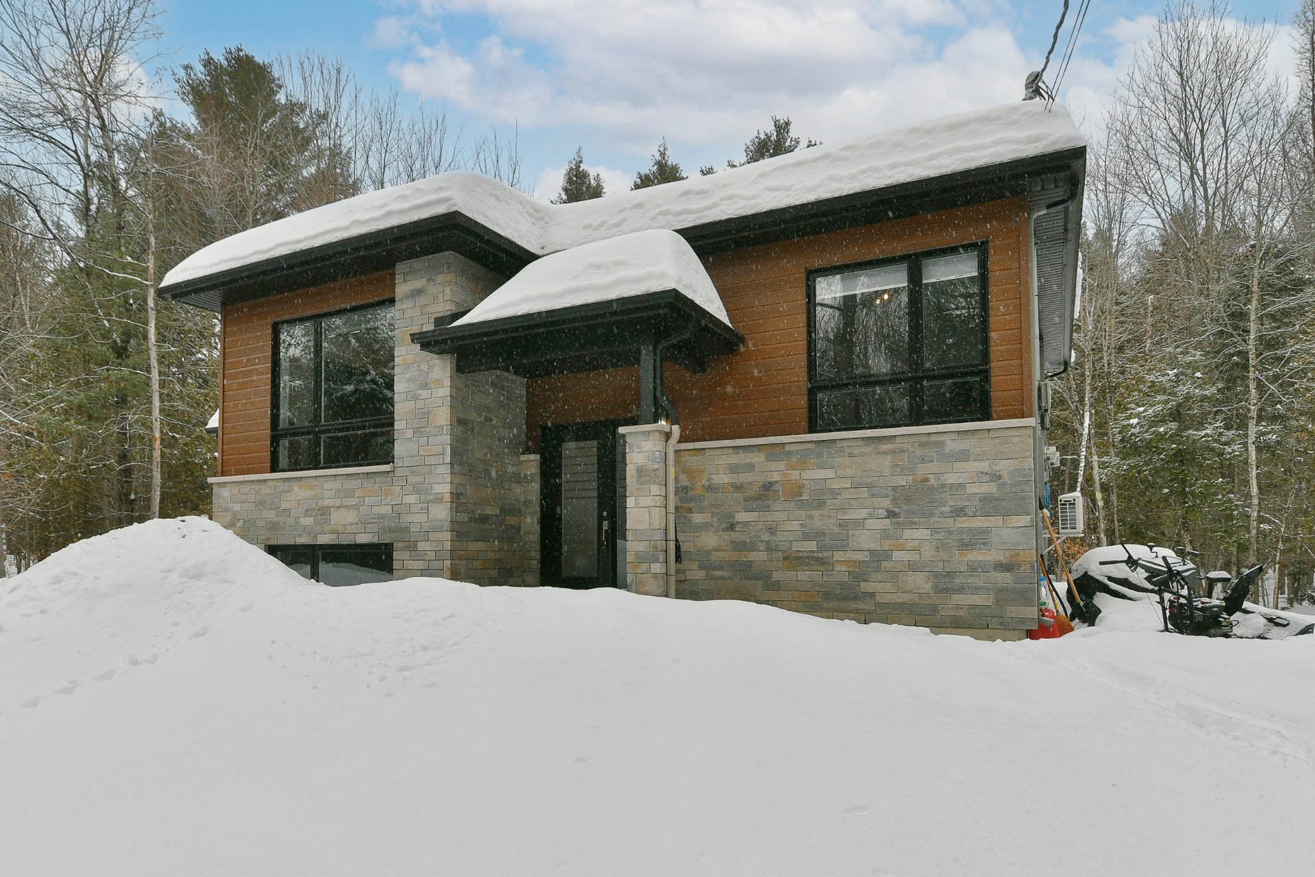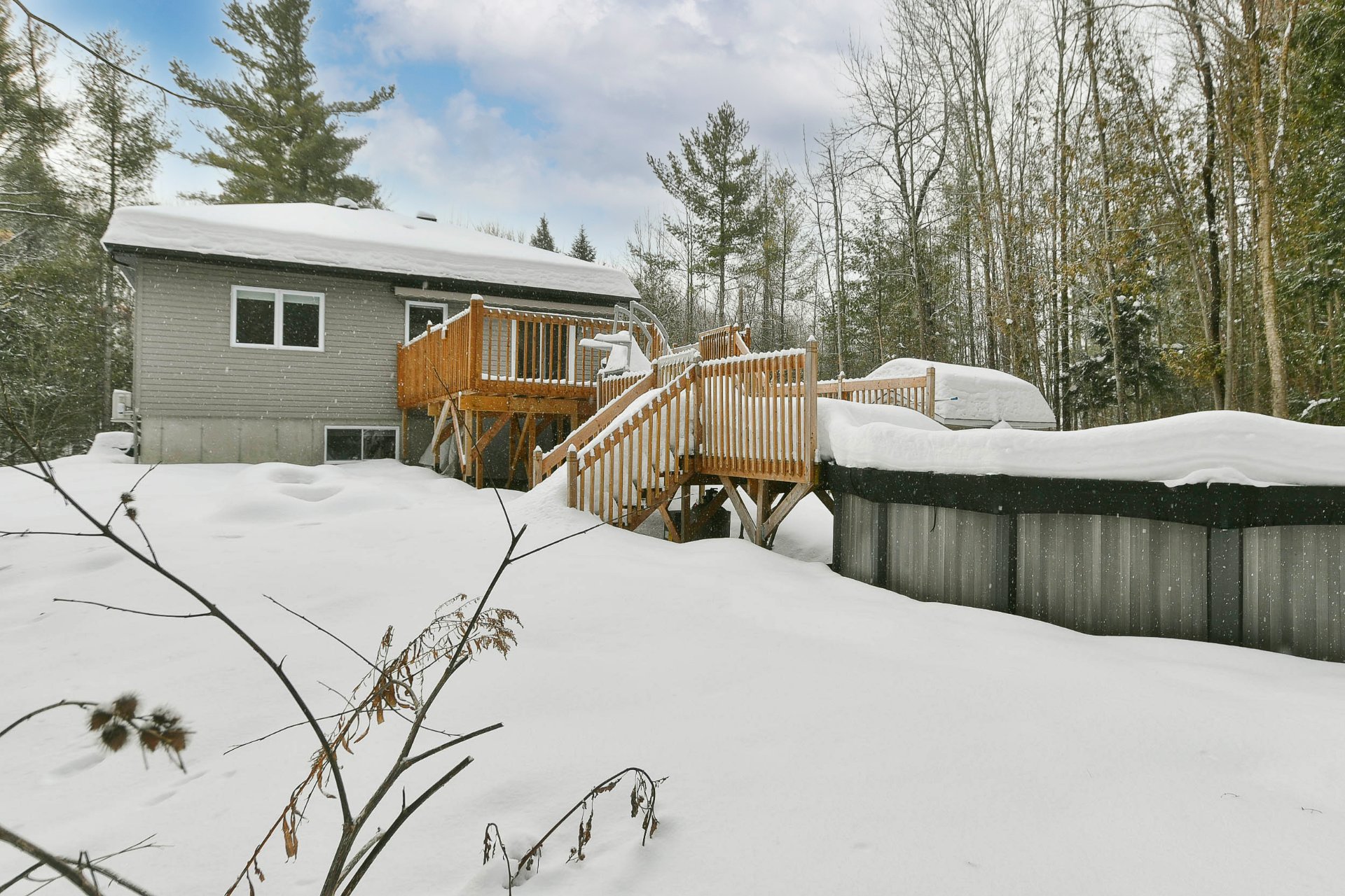 Les installations permanente de chauffage, d'électricité & d'éclairage, stores, tringles à rideaux, lave-vaisselle(à réparer), hotte en inox, aspirateur central & acc., système d'alarme, adoucisseur d'eau, 2 échangeurs d'air, 2 thermopompes murales, auvent rétractable électrique, cabanon, piscine Hors-terre & acc., chauffe piscine, borne voiture électrique, meuble télé avec foyer électrique, lit ascamotable avec bureau.