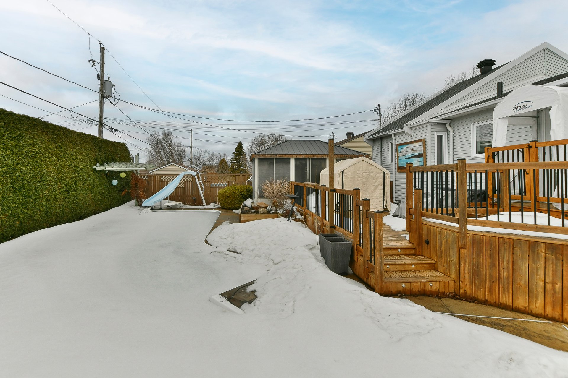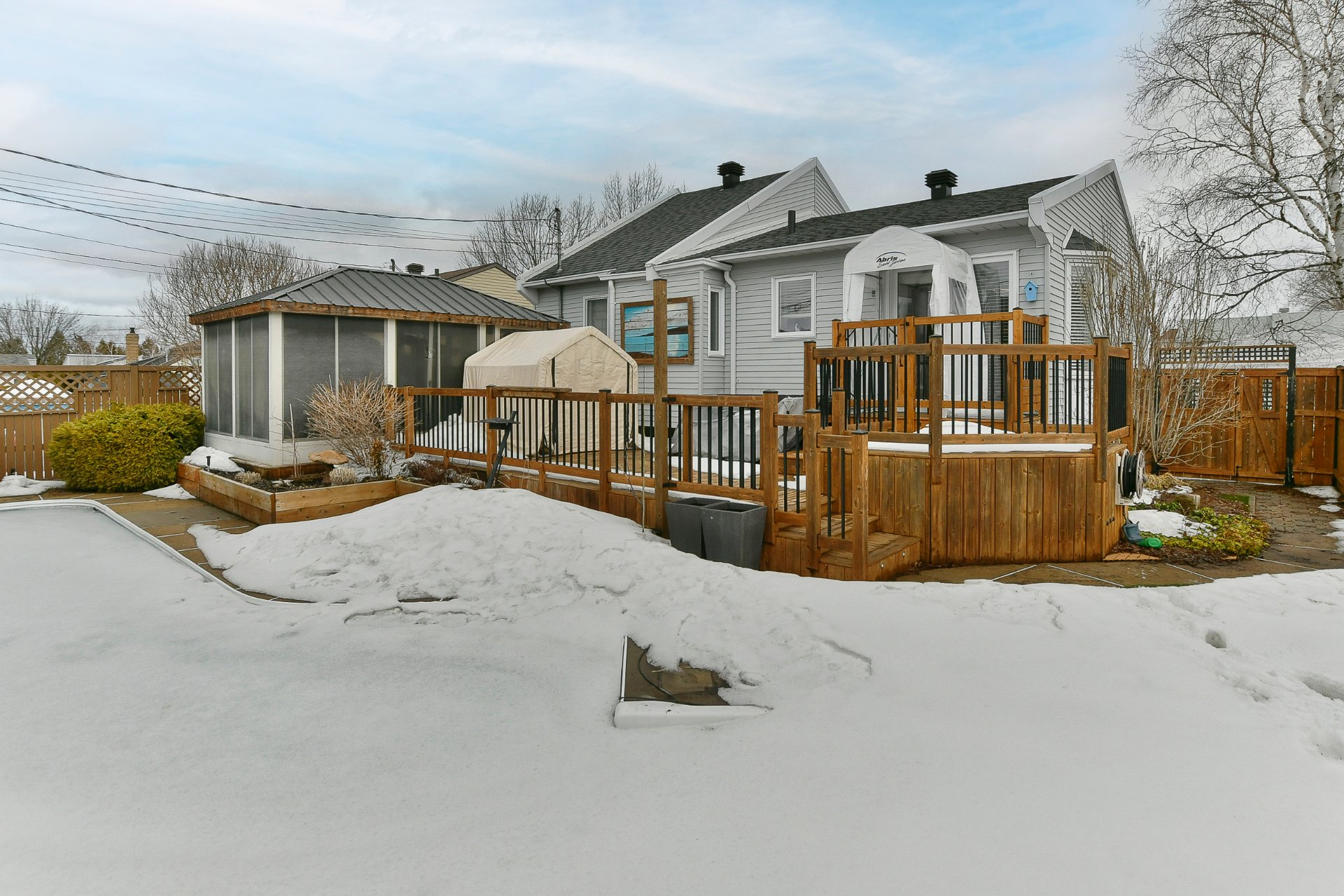 Superbe propriété clé en main, entièrement rénovée avec soin. Elle offre un foyer chaleureux, de magnifiques planchers de bois, ainsi que trois chambres à coucher et deux salles de bain. Profitez d'une cour de rêve aménagée avec une piscine creusée, parfaite pour vos moments de détente. Près de tous les services!